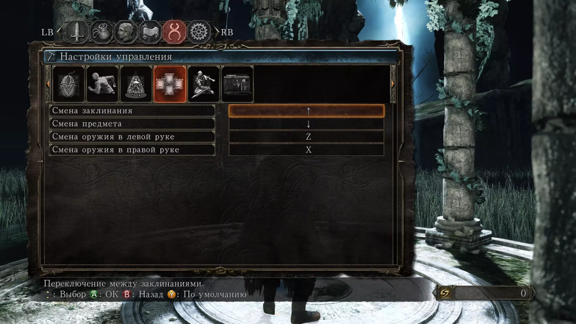 切换法术 - 上箭头,如果你玩的是魔法角色,也可以设置为1键。 切换物品 - 下箭头,也可以设置为3键,以舒适为准。 切换左手武器 - Z 切换右手武器 - X 动作