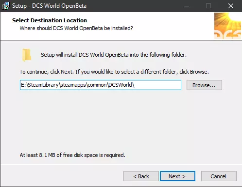 导航至你保存《数字战斗模拟世界》独立安装程序的位置并运行.exe文件。按照常规步骤操作,直至进入安装目录选择界面。对于大多数用户,建议使用以下目录:C: Program Files (x86) Steam steamapps common DCSWorld。请务必确认安装目录以DCSWorld结尾,安装程序会尝试在你选择的文件夹后附加“DCS World OpenBeta”,这并非我们需要的。