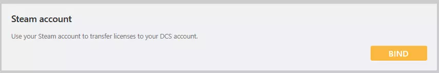 前往DCS官网并创建/登录你的账户。 完成账户创建或登录后,进入你的个人资料页面。(点击右上角的个人资料有时会跳转到订单页面,这与我们当前操作无关) 在继续操作前需要注意,在从Steam迁移任何购买内容之前,你可以先享受新玩家计划的福利。你可以通过新玩家计划以折扣价购买模块,然后迁移你的Steam许可证,这样既能获得较大折扣,又能保留所有许可证。如果您已绑定Steam账户,但尚未在DCS World网站上购买任何物品,您可以先解绑Steam账户,完成购买后再重新绑定。 向下滚动页面至【Steam账户】部分,如果您看到相关内容,则表示您已成功绑定Steam账户,无需继续遵循本指南的此部分内容。
