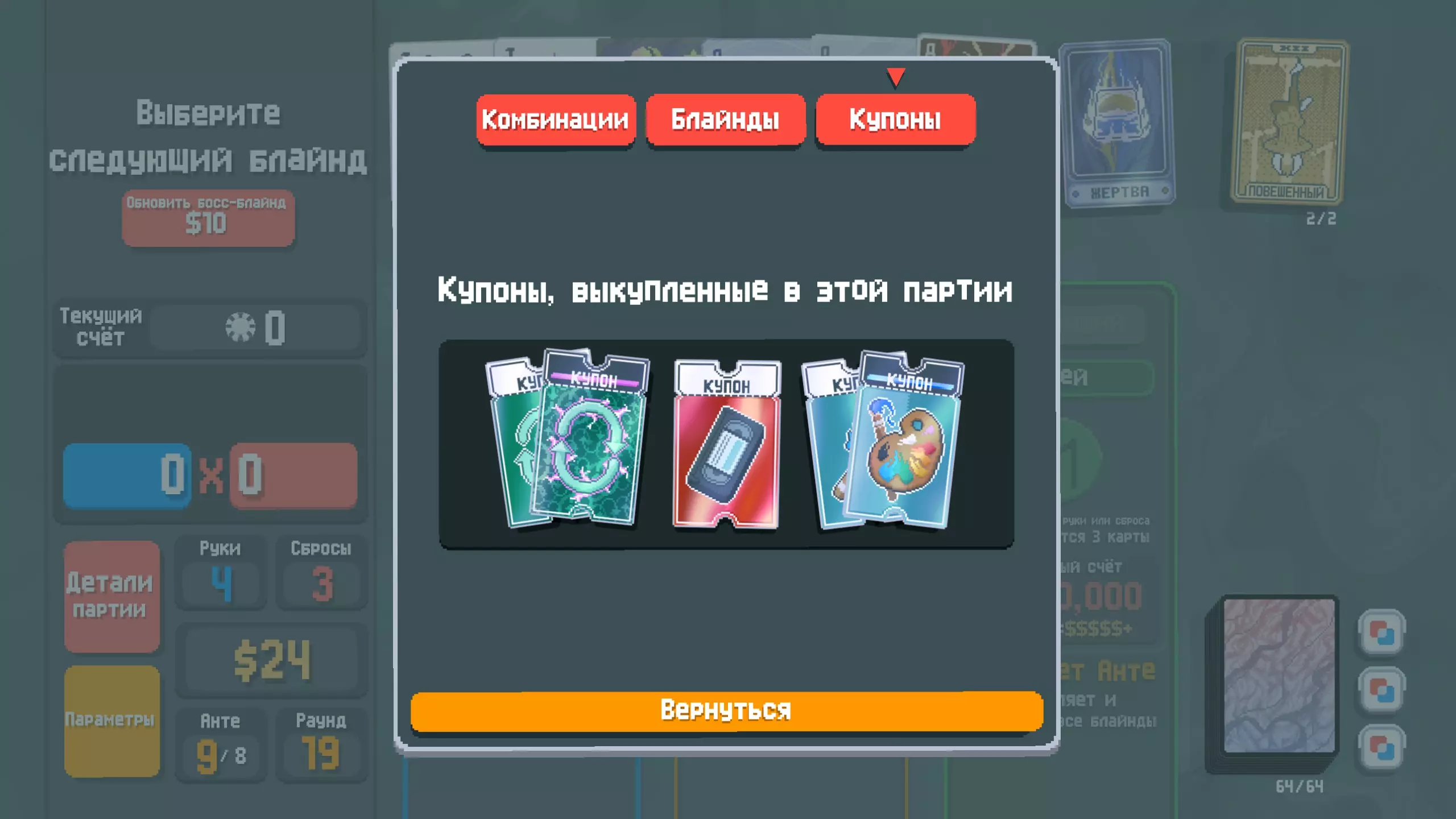 如果您想在Steam Deck上安装本地化文件: 安装过程与Windows上完全相同,仅文件解压路径有所不同。 具体来说,.dll文件的路径: - 若游戏安装在SD卡中:primary/steamapps/common/Balatro - 若游戏安装在内部存储中:Home/.steam/steam/steamapps/common/Balatro Appdata文件夹的路径为:Home/.需要添加到Steam→《巴拉丁》→属性→常规→“启动选项”的字符串:WINEDLLOVERRIDES="version=n,b" %command% (Mac安装方法:将压缩包中的文件解压至路径/Users/用户/Library/Application Support/Balatro;从官方页面下载适用于Mac的最新版本,将liblovely.dylib和run_lovely.sh文件放入游戏文件夹,通过run_lovely.sh启动游戏。)【Xbox Game Pass版安装方法】 1. 将压缩包中的文件解压到Balatro Content Assets文件夹(Xbox -> 右键点击Balatro -> 管理 -> 文件 -> 浏览) 2. 在同一文件夹中用文本编辑器打开game.lua文件,搜索文本"Русский",在第955行代码['ru'] = {font = 6, label = "Русский", key = 'ru', beta = true ...在这一行需要将beta = true改为beta = nil - 进入游戏,在菜单中选择俄语 - 请注意,目前XBOX Game Pass版本的游戏不支持安装Lovely,因此界面修复和风格化字体将无法使用。