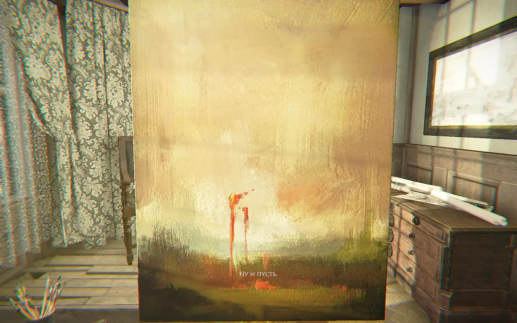 许多玩家在获取成就时遇到问题,需要选择母亲或父亲的阵营。我是这样获得成就的:在迷你回忆中需要完成以下操作: 1. 在储藏室为狗开门(厨房储藏室的回忆) 2. 在地下室捡起乐谱,让父亲演奏正确的旋律(地下室的回忆) 3. 在房间里把狗从沙发上赶走(二楼沙发后的回忆) 4.在母亲的房间里打开留声机(卧室回忆)在大型绘画回忆(工作室回忆)的童年回忆定位过程中保持静止:1.首先拿起粉笔,涂在画布上 2.同样拿起粉笔,涂在画布上 3.拿起画笔涂在画布上 4.将红色颜料管涂在画布上 5.将黑色颜料管涂在画布上 6.拿起粉笔涂在画布上 7.再次在画布上使用粉笔(从树上掉进魔法王国时的粉笔)8.拿起画笔在画布上使用9)在画布上使用黄色颜料管,画作最终应偏向父亲,当你退出回忆时,工作室桌子上的图画将证明这一点,桌子上的图画是关于父母争吵的大型回忆(办公室里的回忆)中的树木:1)选择父亲(右侧的门)2)正确弹奏钢琴旋律3)选择父亲(右侧的门)4)选择父亲(右侧的门)5)之后视频脚本中,奔跑的狗旁边应该出现药瓶,而不是破碎的瓶子。6) 在画面结尾应该有父亲。所有收集到的拼图碎片都要在工作室的墙上拼好,用手电筒将所有拼图碎片照清楚,稍微退后,关掉手电筒,会亮起老鼠的图像,立即走近,亮起房屋平面图,转身180度,打开架子。拼好拼图后关掉手电筒,查看墙上的线条。那里会出现房屋平面图。转身180度,移开书架。 结局 最后,无论如何,我们都会看到一闪而过的门,仿佛在暗示需要进入那里。这扇门是二楼唯一锁着的门:上楼后,立刻向右走。 结局1 如果我们选择站在母亲一边,那么在那间锁着的房间里,我们会从墙上扯下自己的画像并摔碎。