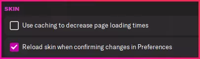 游戏内显示图像 添加所需图像后,启动游戏并进入设置菜单。 然后,你可以选择以下任一方式: 1. 在左侧选择高级选项,在右上角下拉菜单中选择界面,然后向下滚动到皮肤部分,取消勾选“使用缓存减少加载时间”,并勾选“在设置中确认更改时重新加载皮肤”。 2. 在顶部搜索栏中输入“皮肤”,在列出的结果中取消勾选“使用缓存减少加载时间”,并勾选“在设置中确认更改时重新加载皮肤”。