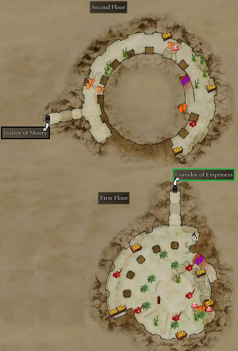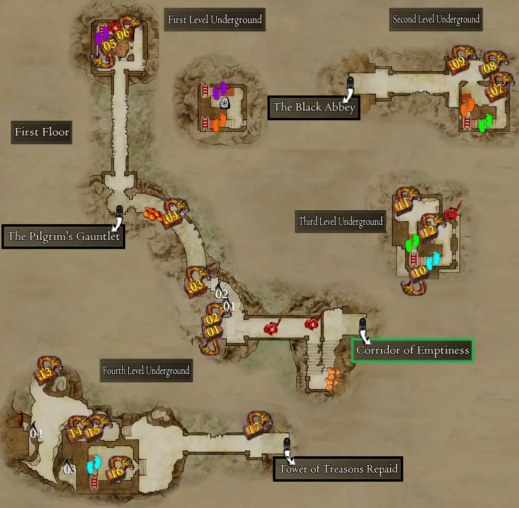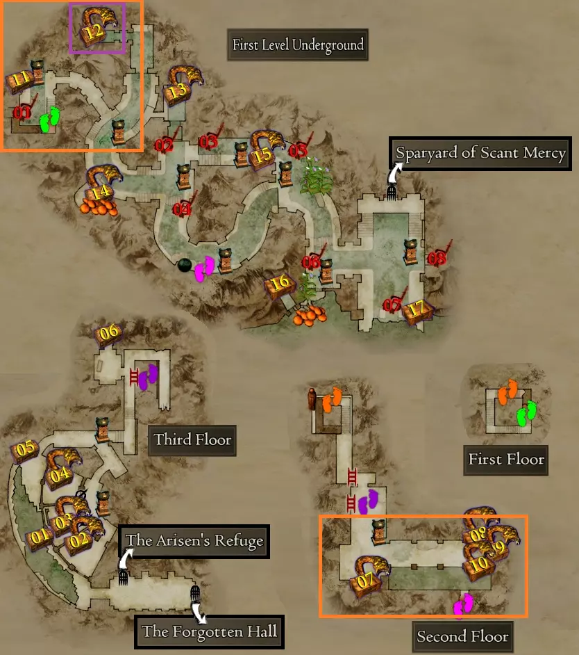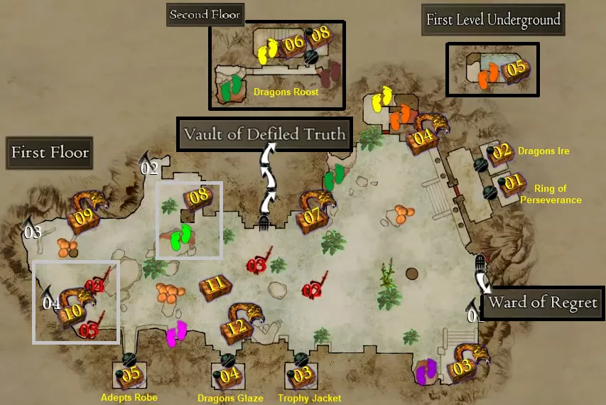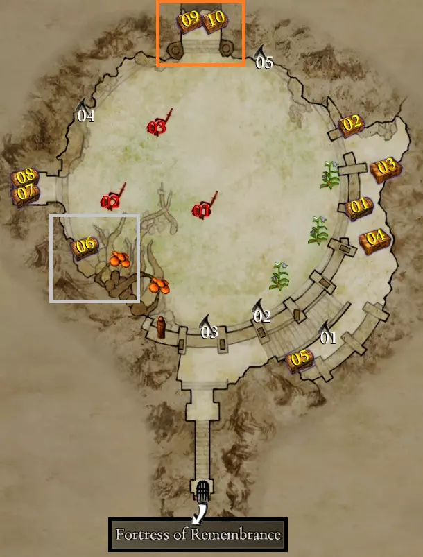 每次进入都会遇到多个强敌,其中一些是解锁Steam成就所必需的。 【悔恨之障】 战前 - 鸡蛇、邪眼、龙兽、古龙与巫妖、九头蛇、两只奇美拉、两只独眼巨人、三只独眼巨人与一个魔像、巫妖、三个骷髅领主 战后 - 上古九头蛇、邪眼+巫妖、古龙+巫妖、金属魔像、金属魔像与三个巫妖、双足飞龙、两只古龙、两只魔像、三只血腥奇美拉、四只血腥独眼巨人、三只食人魔与一只鸡蛇、巫妖与骷髅蛮兵 使用引魔香后 - 两只囚徒血腥独眼巨人、三只长老食人魔与三名歼灭者、龙兽+古龙+双足飞龙
