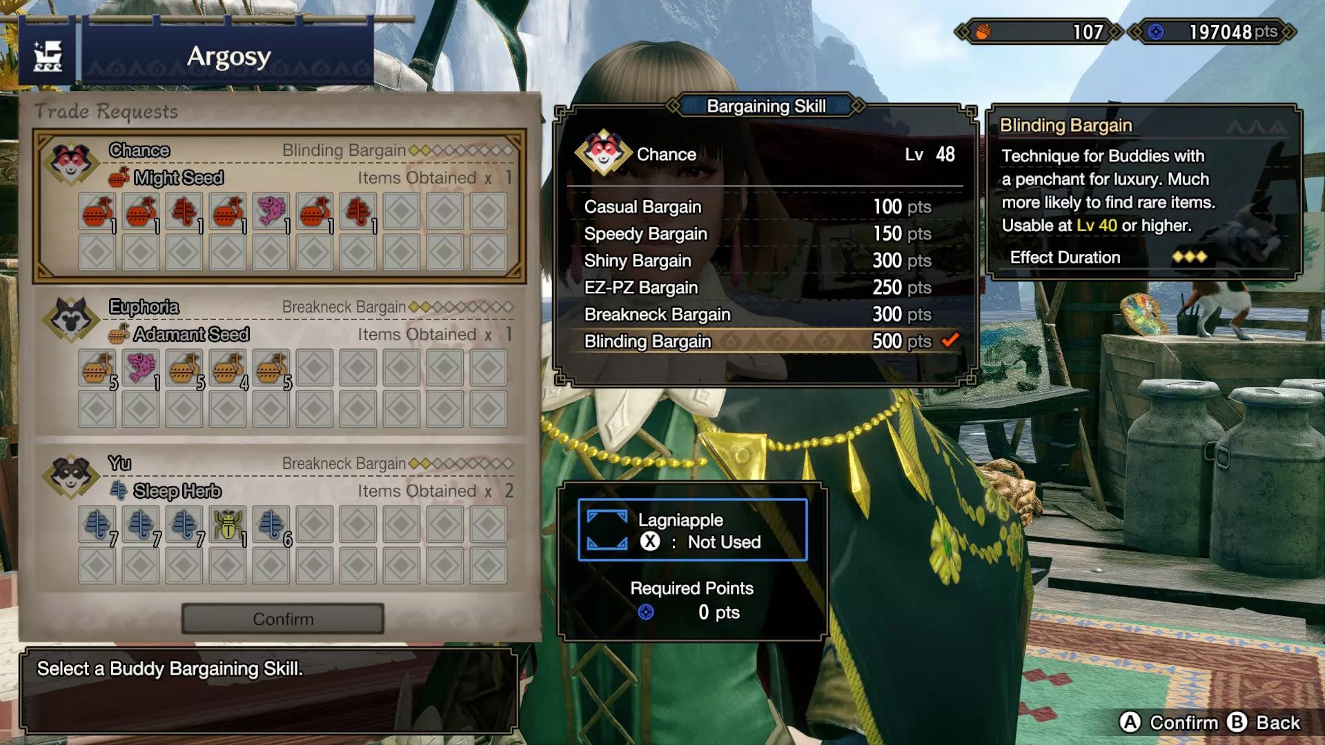 伙伴议价 别忘了那些通过交易船帮你获取物品的伙伴。你不仅要时常清空他们的收集篮,还要查看他们的【伙伴议价】,以获取特殊的 armor 装备。