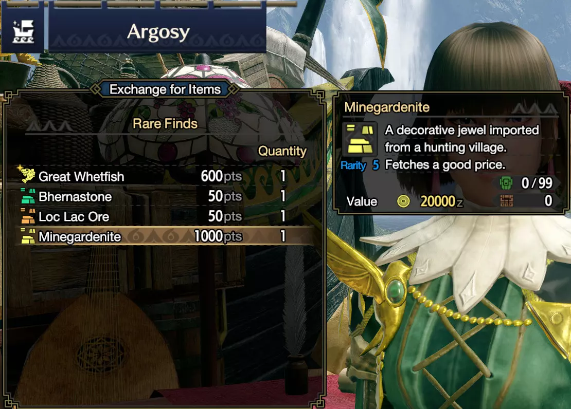 龙女的商品会在每次狩猎后刷新。有时可以买到幽影草芽,有时是苍白提取物。还有些时候,你可以用zeni兑换贵重物品! 每小时3,000,000 zeni 你还需要更多zeni吗?好吧…… 我帮不了你,但或许能给你一些有用的提示。