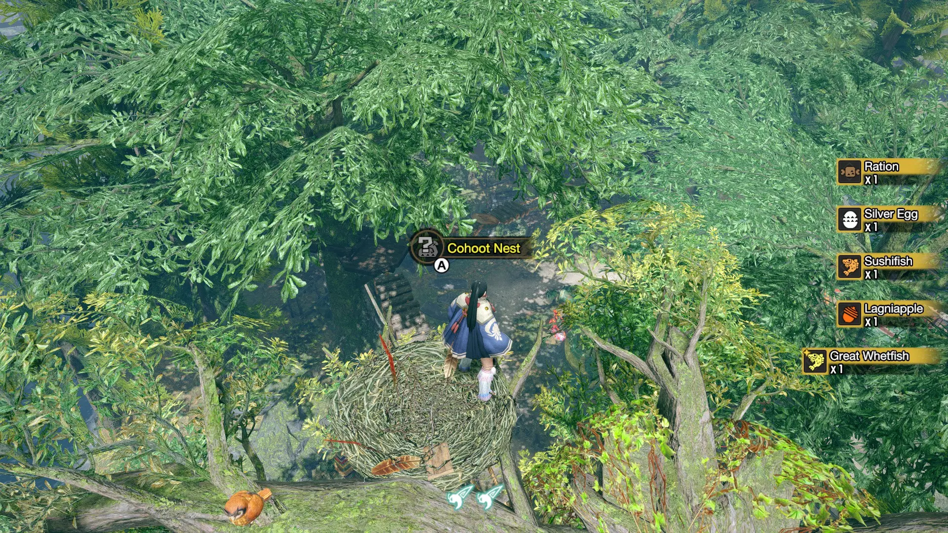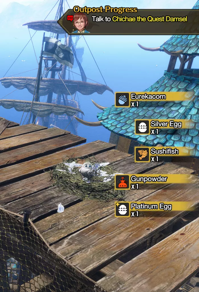 这次收获真幸运! 银蛋是可以兑换zeni的贵重物品,龙涎果可用于活动,甚至还有用于战斗的巨鱼大磨刀鱼! 在曙光DLC的埃尔迦德,你会发现另外两个猫头鹰巢。 你可以在村和埃尔迦德的巢穴中获取战利品,这样就能获得双倍的奖励。