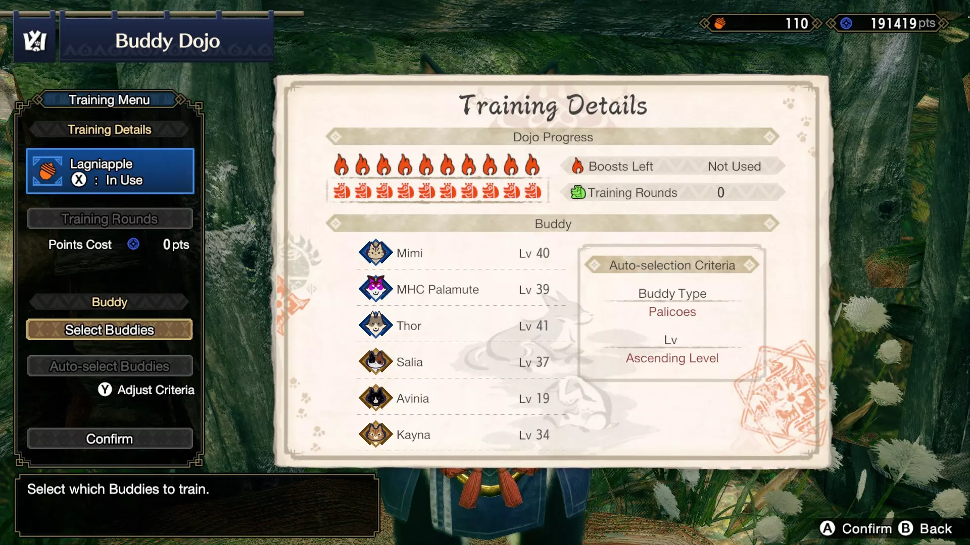 7. 给向导猫一个纳比露苹果 每完成10次狩猎后 在伙伴道场,你最多可以让6个伙伴接受向导猫和它的青蛙对手的训练。虽然这与带着伙伴一起行动相比可能效果有限,但仍然有很大帮助,尤其是在早期阶段,能让你的伙伴为更高等级的猫车任务和伙伴交易做好准备。