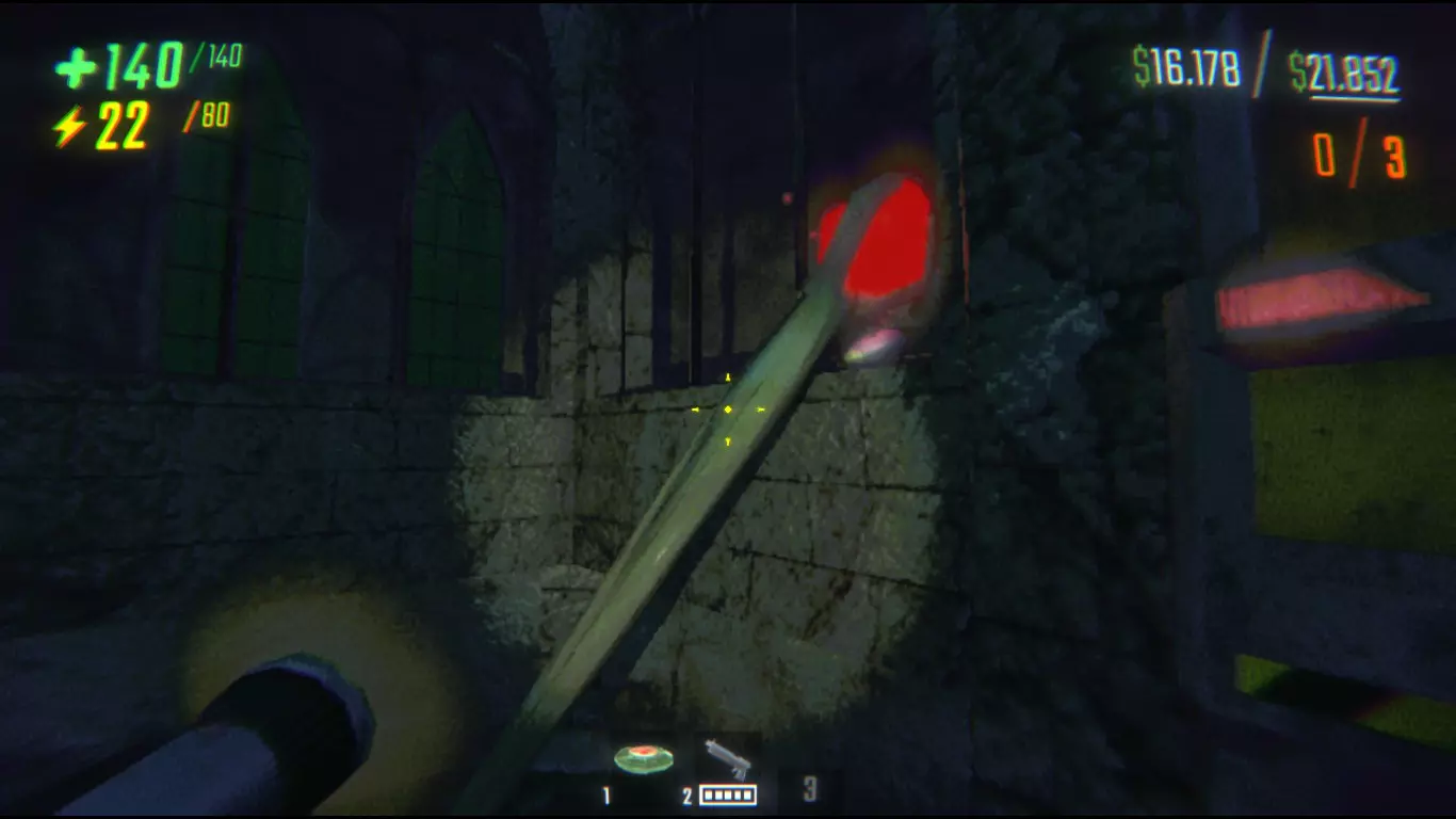 攻击类型与行为:这是最烦人的敌人之一。如果它抓住你,会对你大喊并把你扔出去。它极具攻击性,一旦看到你就会立刻发起攻击。如果你被困在房间里,它很可能会不断对你大喊,让你陷入循环。 建议:如果你没有武器,除了逃跑和躲藏之外几乎无能为力。如果你看到它在附近,尽量远离洞口,因为它总是朝着洞口的方向。 商店武器: 如果你能杀死怪物,这是帮助你逃脱的最佳选择。 需要注意的是,无论是近战武器还是远程武器都需要消耗能量,能量可以在飞船上补充,但前提是必须先购买能量水晶。飞船/卡车/基地里总会有一个,但最好买3到4个。 这部分没什么好说的,我就只说说我对武器的看法。 充气锤