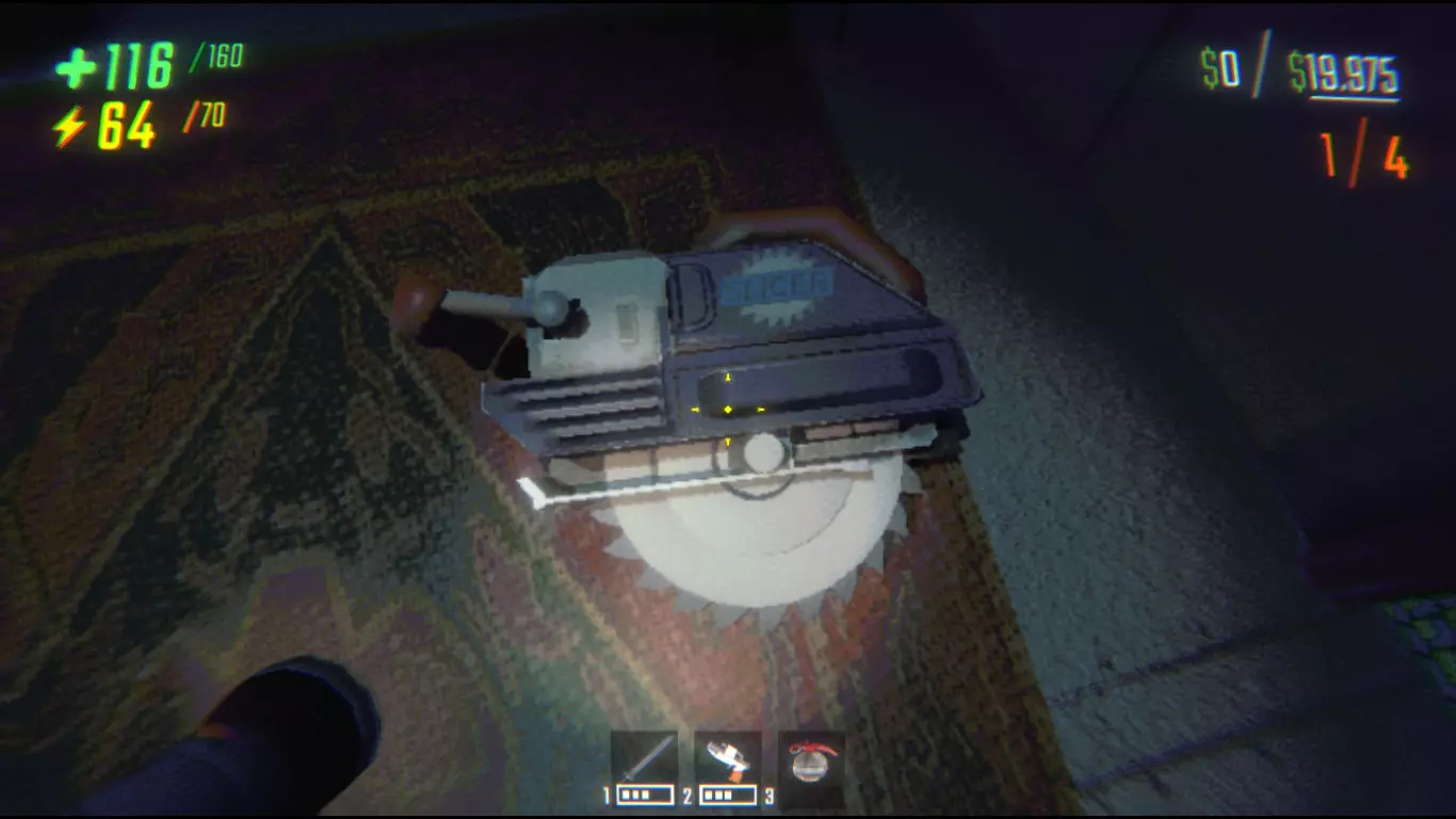 如果它的鼻子被触碰3次,就会激活倒计时,随后爆炸,造成与手榴弹相同的伤害。这是最实用的用法,因为它不会产生太多金钱,但爆炸需要一点时间,所以怪物很容易远离它。 圆形锯片