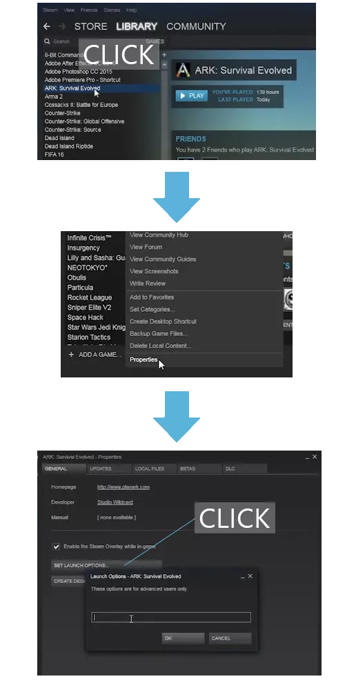 Go to this folder: steamapps common ARK ShooterGame Saved Config WindowsNoEditor In this folder you should replace everything in Engine.ini and GameUserSettings.ini. Open Engine.ini then delete everything and paste the code from this form: [/script/engine.renderersettings] r.DefaultFeature.Bloom=False r.DefaultFeature.AmbientOcclusion=False r.DefaultFeature.AutoExposure=False r.DefaultFeature.MotionBlur=False r.DefaultFeature.LensFlare=False r.EarlyZPass=0 r.SSAOSmartBlur=0 r.HZBOcclusion=0 r.AmbientOcclusionLevels=0 r.BloomQuality=0 r.DepthOfFieldQuality=0 r.SSR.Quality=0 r.SSS.Scale=0 r.SSS.SampleSet=0 r.DetailMode=0 r.LensFlareQuality=0 r.MaxAnisotropy=0 r.oneframethreadlag=1 r.LightShaftQuality=0 r.RefractionQuality=0 r.ExposureOffset=0.3 r.ReflectionEnvironment=0 r.Atmosphere=0 r.Shadow.MaxResolution=2 r.SimpleDynamicLighting=1 r.UpsampleQuality=0 r.ViewDistanceScale=0.4 r.TrueSkyQuality=0 [/script/shootergame.shooterengine] bFirstRun=False FrameRateCap=200 FrameRateMinimum=200 [Core.System] Paths=../../../Engine/Content Paths=../../../ShooterGame/Content Paths=../../../Engine/Plugins/Experimental/CharacterAI/Content Paths=../../../Engine/Plugins/TrueSkyPlugin/Content [SystemSettings] TEXTUREGROUP_World=(MinLODSize=1,MaxLODSize=2,LODBias=0,MinMagFilter=aniso,MipFilter=point) TEXTUREGROUP_WorldNormalMap=(MinLODSize=1,MaxLODSize=2,LODBias=0,MinMagFilter=aniso,MipFilter=point) TEXTUREGROUP_WorldSpecular=(MinLODSize=1,MaxLODSize=2,LODBias=0,MinMagFilter=aniso,MipFilter=point) TEXTUREGROUP_Character=(MinLODSize=1,MaxLODSize=4,LODBias=0,MinMagFilter=aniso,MipFilter=point) TEXTUREGROUP_CharacterNormalMap=(MinLODSize=1,MaxLODSize=4,LODBias=0,MinMagFilter=aniso,MipFilter=point) TEXTUREGROUP_CharacterSpecular=(MinLODSize=1,MaxLODSize=4,LODBias=0,MinMagFilter=aniso,MipFilter=point) TEXTUREGROUP_Weapon=(MinLODSize=1,MaxLODSize=64,LODBias=0,MinMagFilter=aniso,MipFilter=point) TEXTUREGROUP_WeaponNormalMap=(MinLODSize=1,MaxLODSize=64,LODBias=0,MinMagFilter=aniso,MipFilter=point) TEXTUREGROUP_WeaponSpecular=(MinLODSize=1,MaxLODSize=64,LODBias=0,MinMagFilter=aniso,MipFilter=point) TEXTUREGROUP_Vehicle=(MinLODSize=1,MaxLODSize=256,LODBias=0,MinMagFilter=aniso,MipFilter=point) TEXTUREGROUP_VehicleNormalMap=(MinLODSize=1,MaxLODSize=256,LODBias=0,MinMagFilter=aniso,MipFilter=point) TEXTUREGROUP_VehicleSpecular=(MinLODSize=1,MaxLODSize=256,LODBias=0,MinMagFilter=aniso,MipFilter=point) TEXTUREGROUP_Cinematic=(MinLODSize=1,MaxLODSize=128,LODBias=0,MinMagFilter=aniso,MipFilter=point) TEXTUREGROUP_Effects=(MinLODSize=1,MaxLODSize=128,LODBias=0,MinMagFilter=linear,MipFilter=point) TEXTUREGROUP_EffectsNotFiltered=(MinLODSize=1,MaxLODSize=128,LODBias=0,MinMagFilter=aniso,MipFilter=point) TEXTUREGROUP_Skybox=(MinLODSize=1,MaxLODSize=256,LODBias=0,MinMagFilter=aniso,MipFilter=point) TEXTUREGROUP_UI=(MinLODSize=1,MaxLODSize=256,LODBias=0,MinMagFilter=aniso,MipFilter=point) TEXTUREGROUP_Lightmap=(MinLODSize=1,MaxLODSize=8,LODBias=0,MinMagFilter=aniso,MipFilter=point) TEXTUREGROUP_Shadowmap=(MinLODSize=1,MaxLODSize=2,LODBias=0,MinMagFilter=aniso,MipFilter=point,NumStreamedMips=3) TEXTUREGROUP_RenderTarget=(MinLODSize=1,MaxLODSize=128,LODBias=0,MinMagFilter=aniso,MipFilter=point) TEXTUREGROUP_MobileFlattened=(MinLODSize=1,MaxLODSize=2,LODBias=0,MinMagFilter=aniso,MipFilter=point) TEXTUREGROUP_Terrain_Heightmap=(MinLODSize=1,MaxLODSize=2,LODBias=0,MinMagFilter=aniso,MipFilter=point) TEXTUREGROUP_Terrain_Weightmap=(MinLODSize=1,MaxLODSize=2,LODBias=0,MinMagFilter=aniso,MipFilter=point) [Oculus.Settings] bChromaAbCorrectionEnabled=True bYawDriftCorrectionEnabled=True bDevSettingsEnabled=False bOverrideIPD=False bOverrideStereo=False bOverrideVSync=True VSync=True bOverrideScreenPercentage=False bAllowFinishCurrentFrame=True bLowPersistenceMode=True bUpdateOnRT=False FarClippingPlane=0.000000 NearClippingPlane=0.000000 [WindowsApplication.Accessibility] StickyKeysHotkey=False ToggleKeysHotkey=False FilterKeysHotkey=False StickyKeysConfirmation=False ToggleKeysConfirmation=False FilterKeysConfirmation=False Save it and do the same with GameUserSettings.ini [/script/shootergame.shootergameusersettings] MasterAudioVolume=0.107143 MusicAudioVolume=0.039683 SFXAudioVolume=0.409387 CameraShakeScale=0.037899 bFirstPersonRiding=False bThirdPersonPlayer=False bShowStatusNotificationMessages=True TrueSkyQuality=0.000000 FOVMultiplier=1.250000 GroundClutterDensity=0.000000 bFilmGrain=False bMotionBlur=False bUseDFAO=False bUseSSAO=False bShowChatBox=False bCameraViewBob=False bInvertLookY=False bFloatingNames=True bChatBubbles=True bJoinNotifications=False bCraftablesShowAllItems=True LookLeftRightSensitivity=1.000000 LookUpDownSensitivity=1.000000 GraphicsQuality=4 ActiveLingeringWorldTiles=10 bUseVSync=False ResolutionSizeX=1920 ResolutionSizeY=1080 LastUserConfirmedResolutionSizeX=1920 LastUserConfirmedResolutionSizeY=1080 WindowPosX=-1 WindowPosY=-1 bUseDesktopResolutionForFullscreen=False FullscreenMode=0 LastConfirmedFullscreenMode=1 Version=5 bHideServerInfo=False LastServerSearchType=2 LastServerSearchHideFull=False LastServerSearchProtected=False HideItemTextOverlay=False bDistanceFieldShadowing=False LODScalar=0.000000 HighQualityMaterials=False HighQualitySurfaces=False bTemperatureF=False bDisableTorporEffect=True [ScalabilityGroups] sg.ResolutionQuality=100 sg.ViewDistanceQuality=2 sg.AntiAliasingQuality=0 sg.ShadowQuality=2 sg.PostProcessQuality=2 sg.TextureQuality=2 sg.EffectsQuality=0 sg.TrueSkyQuality=0 sg.GroundClutterQuality=0 sg.IBLQuality=0 sg.HeightFieldShadowQuality=2 [SessionSettings] SessionName=ARK #563569 [/script/engine.gamesession] MaxPlayers=70 [AdminPassword] Password= ServerPassword= Done. That should add you ~10-20 FPS which is a good result. Notes I hope this guide was helpful for you. You can rate it and add to the favorites if you want :D
