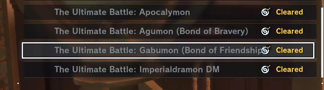 在游戏后期,除了所有支线任务和其他需要反复刷的内容外,你还可以挑战四场战斗。击败它们可以确保获得相应的卡片,其他方法则需要你在 Jogmon 中完成整个亚古兽或加布兽的进化(随机性很高)。击败帝皇龙甲兽 D 也能获得一张卡片,而启示录兽似乎不会掉落卡片,但你可以从商人处购买这些卡片。