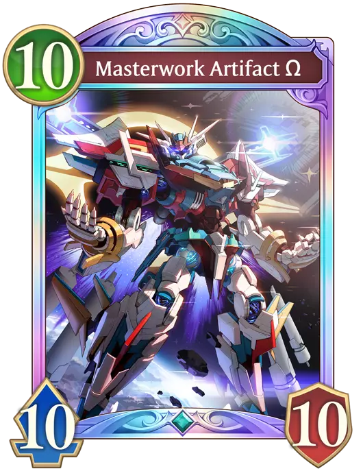 这就是你在整个游戏中一直努力的目标。 杰作神器Ω(欧米茄)是一张10费的随从类型卡牌,具有神器特性。 欧米茄拥有10点攻击力和防御力,以及风暴、毁灭、守护和光环(无法被敌方技能选为目标)。欧米茄在召唤时还会对场上所有敌方随从造成5点伤害,并为你恢复5点生命值。 欧米茄是通过将阿尔法与贝塔和伽马作为素材融合而成的。 请注意,只有阿尔法可以作为融合基底。贝塔和伽马的信息面板上没有融合按钮。你不必一次性将所有素材融合到阿尔法中,你可以选择逐个融合(例如,当你需要腾出手牌空间时),但要注意每回合只能对一张卡牌进行一次融合。另外需要注意的是,可能会将不合适的材料融合到阿尔法中,例如重复的贝塔和伽马卡牌。这样做会导致这些卡牌被消耗且不会获得任何回报。 从零开始合成欧米茄的总成本是11张0阶素材卡牌。在判断自己距离能够合成欧米茄还有多远时,记住这一点可能会很有用。 如果欧米茄都不能为你赢得游戏,那么就没有什么能做到了。 话虽如此,欧米茄并非无敌卡牌。它容易受到灾厄效果的影响,也会被非指向性破坏效果影响,例如神圣雷霆,该效果不会指定目标,而是会随机破坏攻击力最高的卡牌。此外,欧米茄也可能会被普通的随从攻击击败,不过作为回报,它会对任何未超进化的单位施加灾厄效果。和《影之诗》一贯的风格一样,最好尽快结束对战,如果你已经到了可以召唤欧米茄的阶段,就是现在了。这套卡组