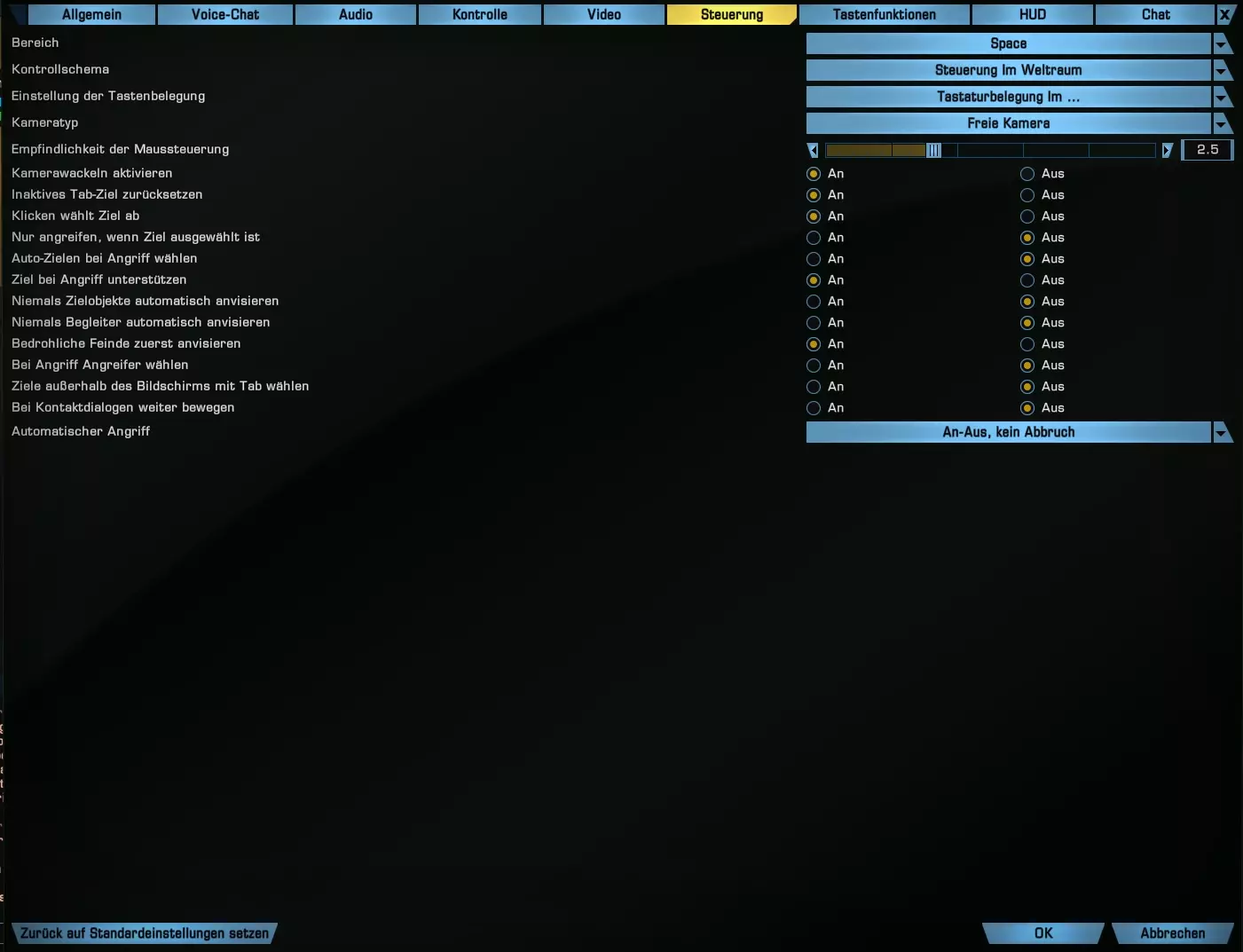 我希望大家都清楚《星际迷航Online》(STO)是如何实现星图导航的。 效率的关键3:太空自动射击 自动射击! 什么,你们不知道?这也难怪,游戏里几乎没有提到过这个功能。 接下来我会告诉大家如何激活并使用这个关键功能! 进入选项,然后点击控制,你们应该会看到以下界面。如果显示的内容不同,请将区域切换为太空,因为你们很可能正处于地面场景中。