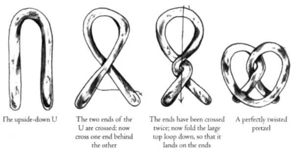 图:椒盐卷饼的成熟阶段 从遗传学角度来看,你会发现所有处于青春期、尚未成形的幼年椒盐卷饼都是由单股椒盐卷饼DNA构成的。只需解开椒盐卷饼形态的束缚,就能找到一整条富含淀粉和麸质的美味长链。毕竟,能被创造出来的东西,也能被拆解。 不要再执着于经典的德国风味——那种漂亮的蝴蝶结和结状造型,不妨试试将几根卷饼扭在一起,形成一种粗绳般的形状。没错,你这个脆弱的小家伙,这是可能的!不要再像对着间谍玩家那病态的身影一样,用手猛砸它,试试窒息吧!因为绞索不正是一个人最后的、也是最具决定性的领带吗。或者,鞭笞致死是一个出人意料的可靠选择,但缺点是我们需要考虑其中涉及的劳动量。根据我的计算和仅有的一次尝试,我用多根椒盐卷饼鞭抽打了四千七百二十九下,还请了好几个下午的假,才最终把那个间谍头目打死。不过,过程中也有乐趣,谁知道呢!如果你有时间和动力,一切皆有可能!Vundabar! 来认识一下法棍