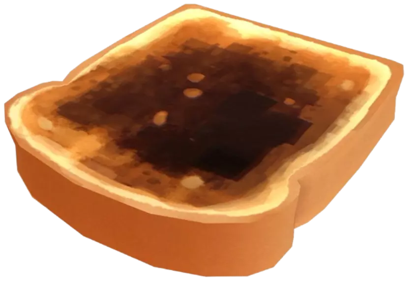 玉米面包质地柔软、蓬松且美味。虽然它的多孔性几乎与烤饼相当,但在战斗潜力上略胜一筹,因为它可以大批量烤制,拥有更大的表面积。这意味着能一次性击中更多的间谍玩家,这对所有人来说都是好事。 不过,由于压力分散在更大的区域,我设想将玉米面包作为脚缠布,用于跆拳道风格的侧踢、转身踢和后踢。可以把玉米面包看作是你的缓冲垫,而间谍玩家仍会受到显著且严重的物理打击。 来认识一下【焦黑面包片】。