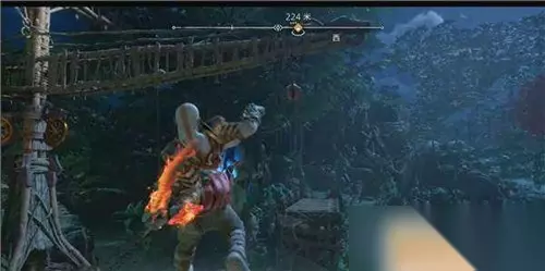 回来之后,再用斧子钉在刚刚的位置,水车旁会看到最后一个炉子,点亮后解锁三女神宝箱,获得【血蜜酒号角】。