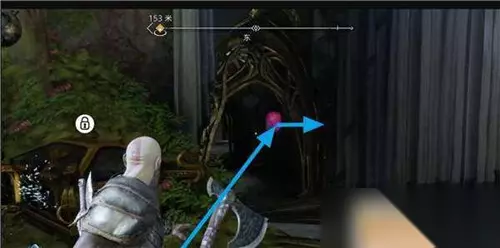 获取方法 需要在短时间内快速撞三个印有符文的装置,第一个就在三女神宝箱上方。