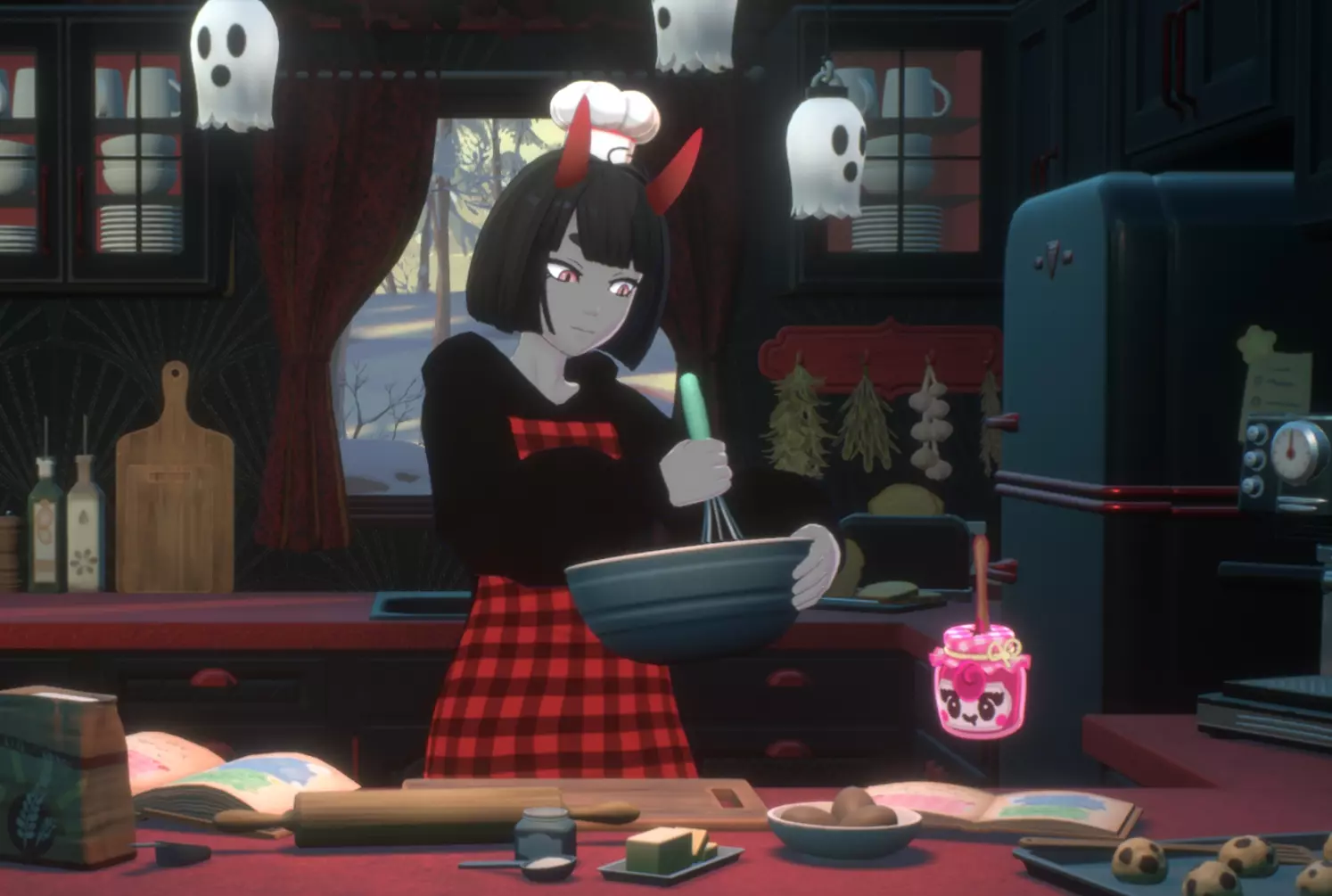 【幻灵介绍】 一个友好的墨灵(Inkster),在撰写了众多食语后,有时会神秘进化为果酱灵(Jamama)。 它们身上总是弥漫着成熟水果的甜美香气,据说这种气味能激发厨师们的食谱创新灵感。其罐子般的身体并非摆设,可用于保存水果和蔬菜,随着时间推移,会微妙地改变食材的颜色与香气。有人认为,食材在果酱灵体内存放的时间越长,味道就越浓郁。 尽管看似相当脆弱,果酱灵却出奇地坚韧,拥有照顾和保护朋友的母性本能。若以耐心与善意对待,它们能成为无价的厨房助手,帮忙整理食品储藏室或为厨师伙伴运送食材。【获得方式】 活动:厨房-炖煮 环境音:温馨的壁炉 幻灵伙伴:Inkster