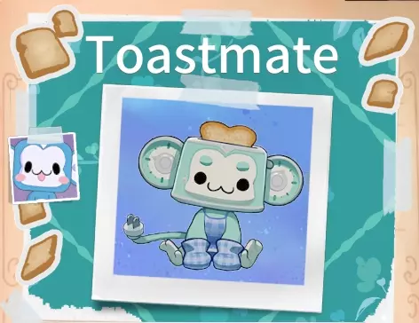 【幻灵介绍】 Toast-mate是一个温暖可靠的精灵。被Mon-ki家电部门采纳为吉祥物,这个精灵比APE-bit早了几十年。 作为一种顽皮的喜爱姿态,它会从头上弹出一片吐司,虽然不可食用,但吐司的完成度可以反映这个精灵的心情。如果你注意到Toast-mate状态有点过头,试着调整它耳朵上的旋钮让它冷却。就像它的数字伙伴APE-bit一样,Toast-mate喜欢怀旧和舒适,是烘焙美味甜点时的完美伴侣。 【获得方式】 光照:早晨 活动:厨房-烹饪 幻灵伙伴:APE-Bit