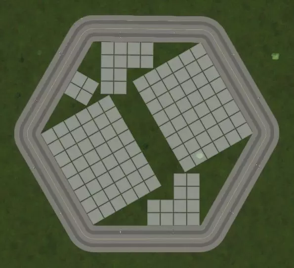 这可真方便!这意味着我们之前为正方形计算的区块大小,实际上也是任何正多边形内径的答案。(不过,能密铺平面的正多边形只有3种,所以这也没那么有用,但至少我们不用分别计算等边三角形和六边形了。) 我讨厌分区系统。 那么我们搞定了吗?遗憾的是还没有。我最希望《城市:天际线2》能修复的就是分区系统,希望它在曲线或非直角区域能不那么别扭。但并没有,我们还是摆脱不了小方块的束缚。
