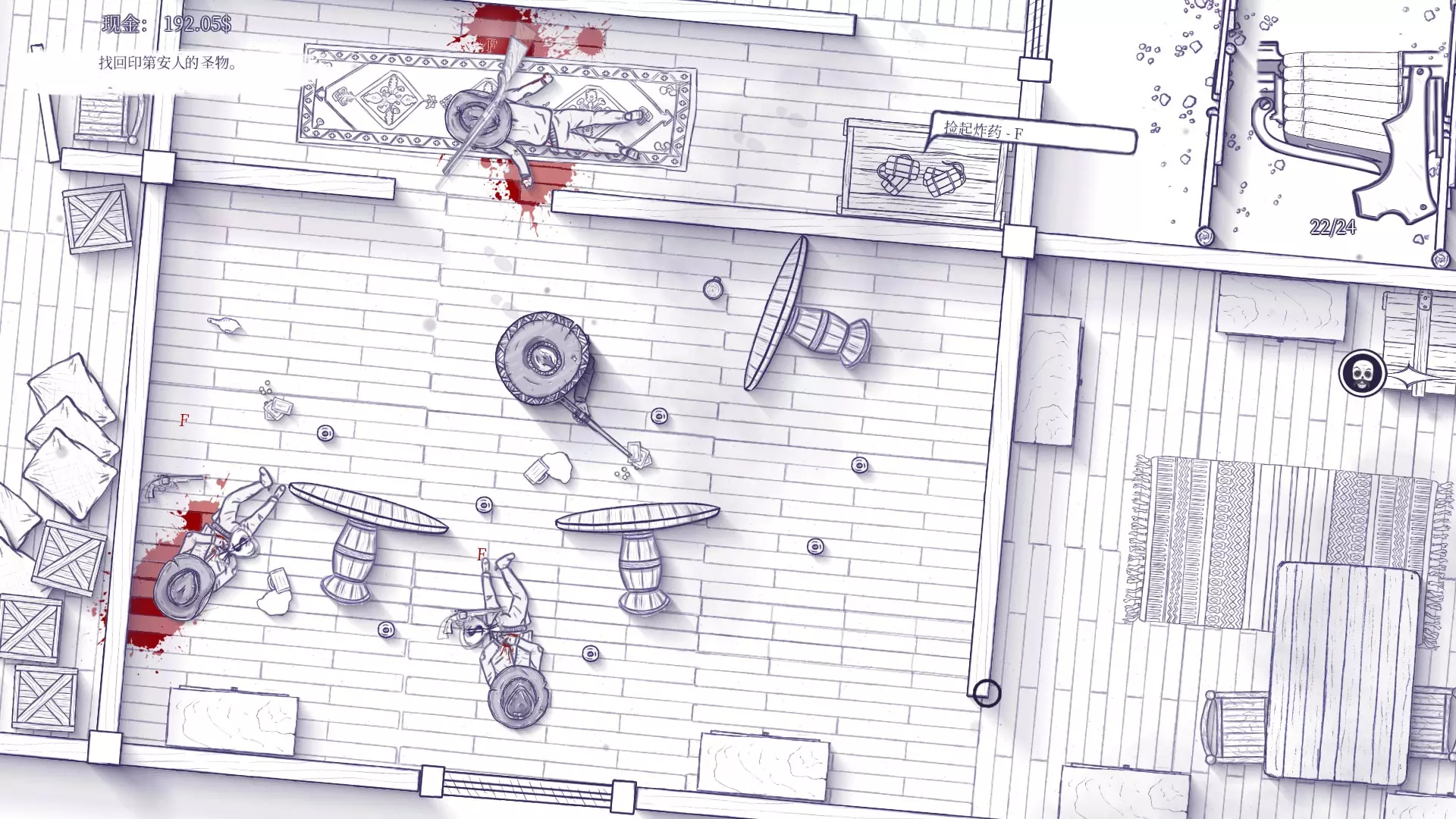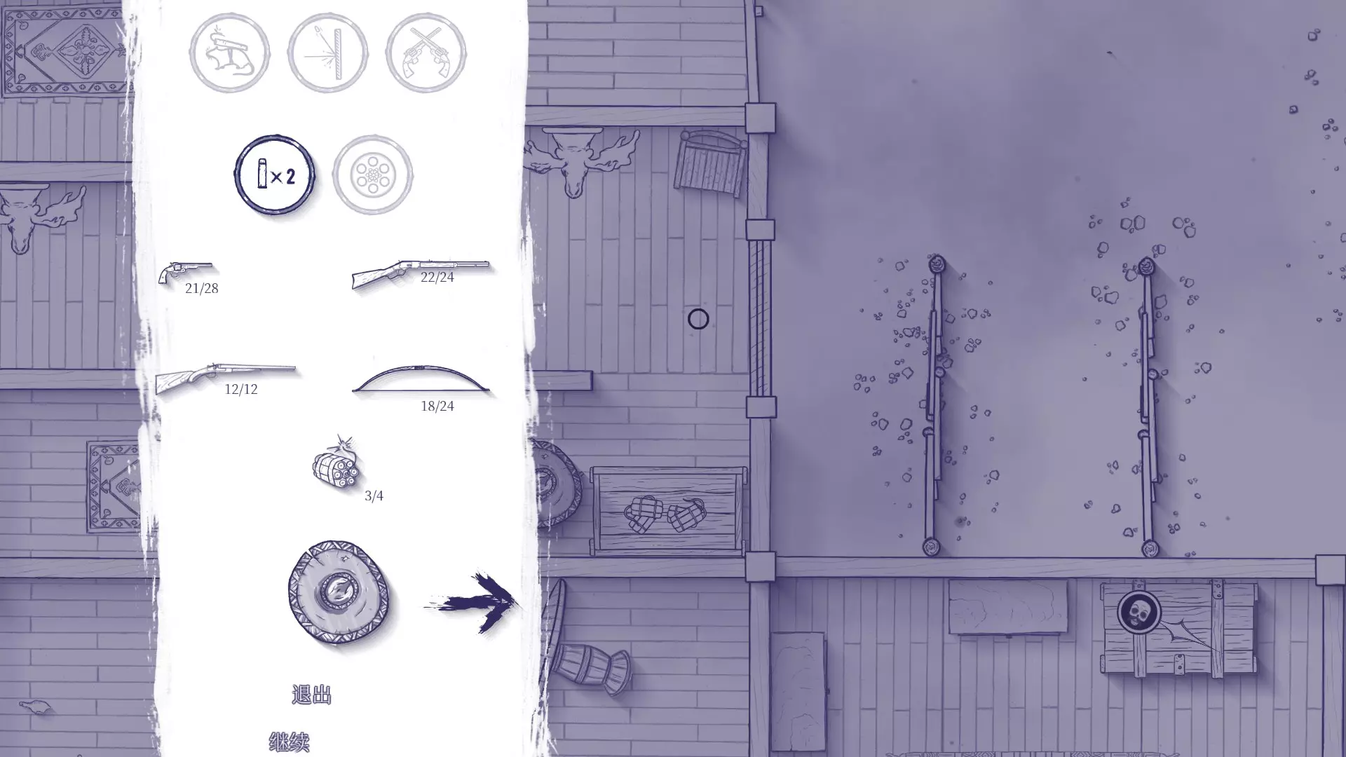 帮助通关和正好玩到这里的玩家快速刷成就。 第2章第11节,也就是男主到镇上黑店打探消息当场被人出卖后的关卡。 该地图上有2个房间共5个瓶子,注意右边桌子上方的物品也是瓶子。
