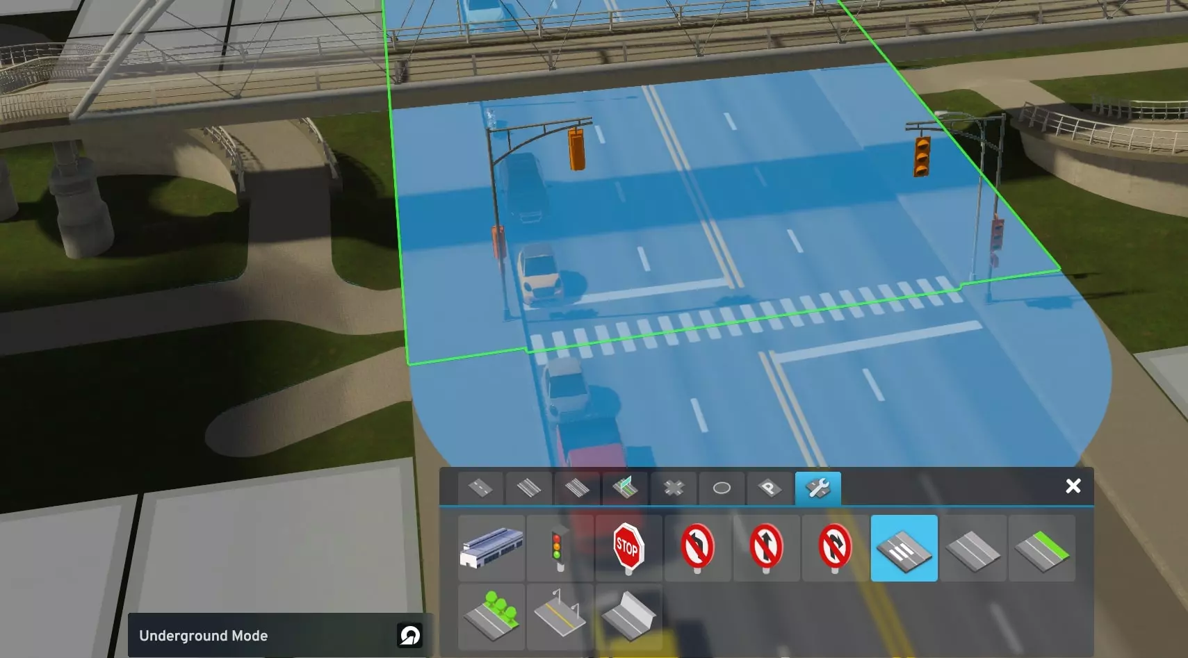 最后,在没有任何引导设施的情况下,将道路连接到人行道。 避免创建人行横道,否则即使之后用道路工具将其移除,你的市民仍会使用那里过马路。