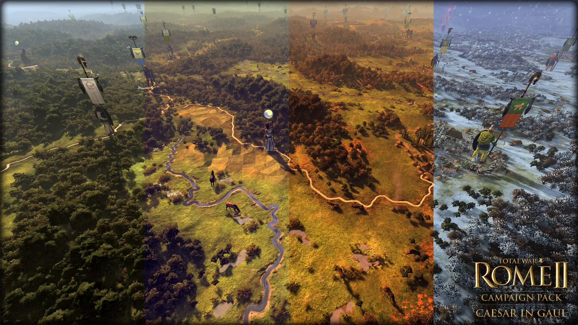 在菲利普五世战败后,马其顿实际上沦为了罗马的行省。菲利普的继承者珀尔修斯试图改变这一局面,在他去世后宣布马其顿独立。罗马别无选择,只能派遣军队前往马其顿,以镇压这场叛乱。但珀尔修斯不愿不战而降。彼得那战役发生于公元前168年。在这场战役中,罗马军队在米特拉的指挥下,与安德里斯库斯率领的马其顿军队展开了战斗。战斗中,罗马的纪律战胜了马其顿的勇猛。 还有其他一些补充内容,例如【伊庇鲁斯与战象】以及迦太基军队系列的扩展。它们与【奥古斯都战士】类似,都是为了填补游戏玩法中的漏洞,即开发者修复他们未完成的内容,因此我决定不对它们单独进行段落阐述。付费内容(DLC) 【高卢的凯撒】[Caesar in Gaul campaign pack] 发布日期:2013年12月17日
