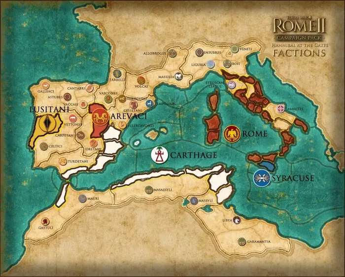 玩家在此可以选择重走巴克特里亚人的战斗之路,扭转历史局势使其对己方有利;也可以选择站在罗马人一边,将共和国从地区性国家转变为强大势力,连遥远的继业者国家都不得不正视。作为额外内容,玩家还可以选择叙拉古以及几个西班牙部落进行游戏。顺便说一下,所有这些派系在大型战役中都可以使用,可惜的是锡拉库萨在大型战役中仍然是没有城墙的农场...