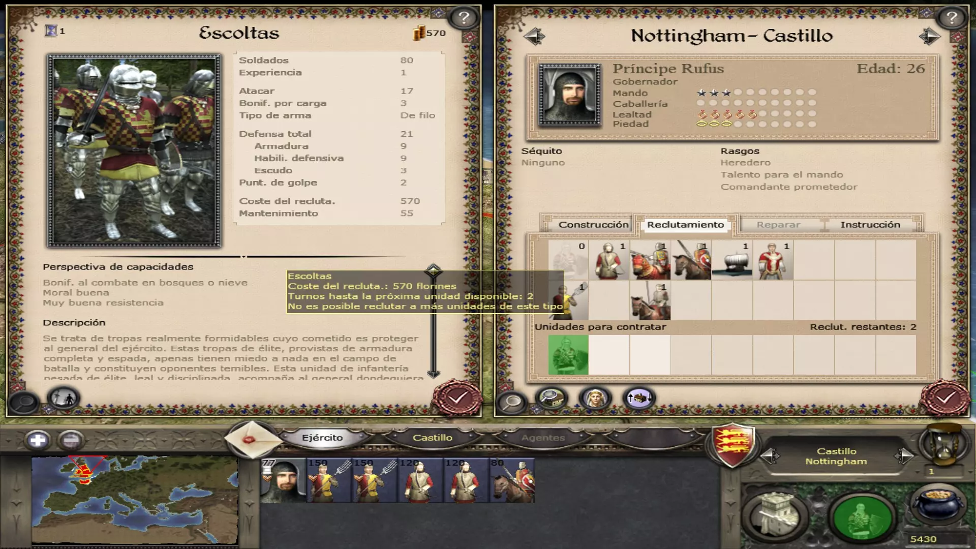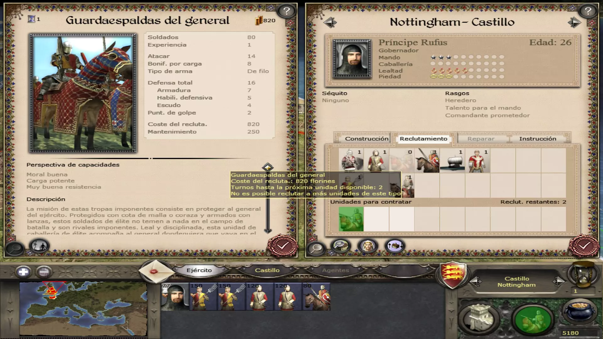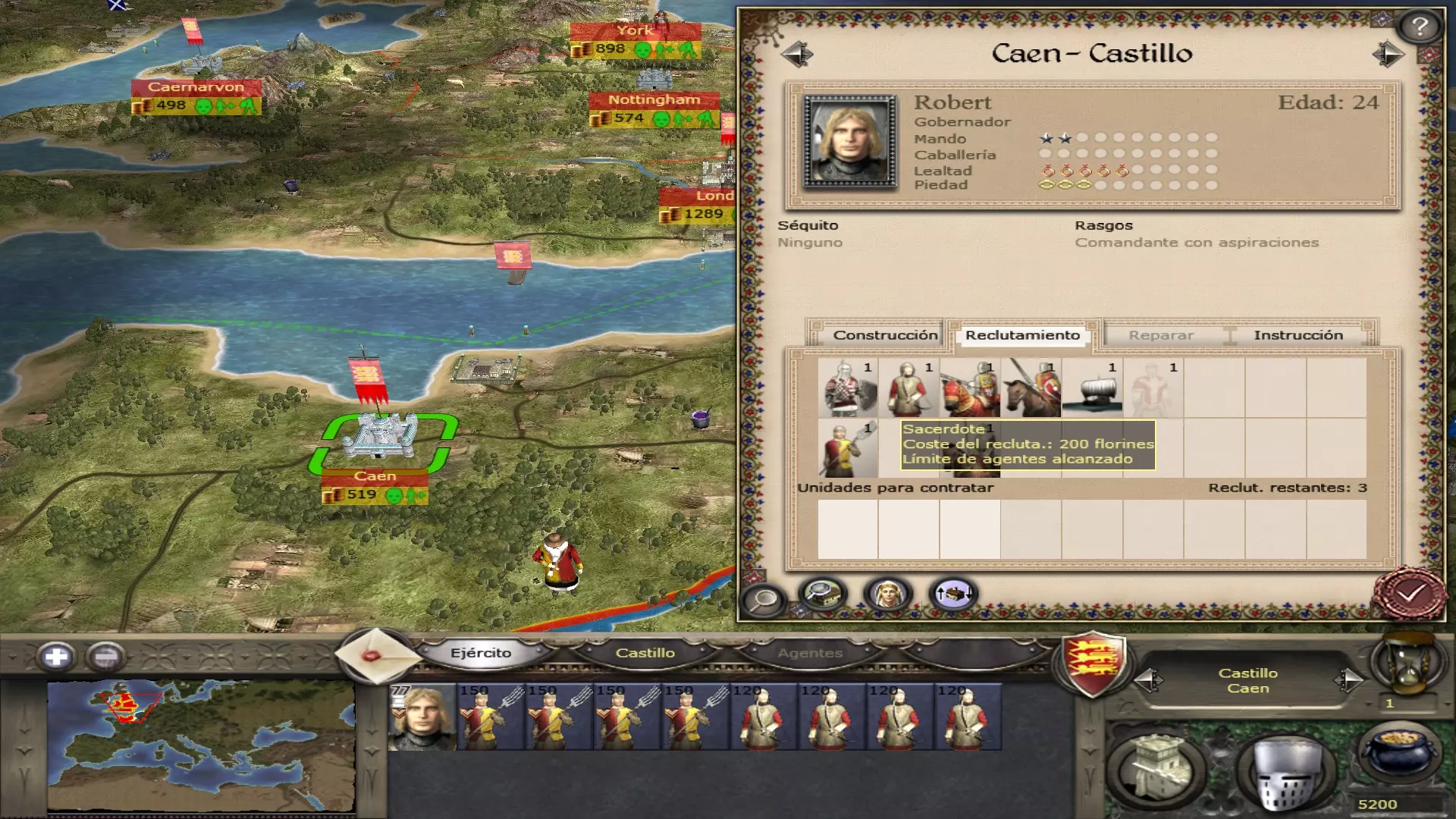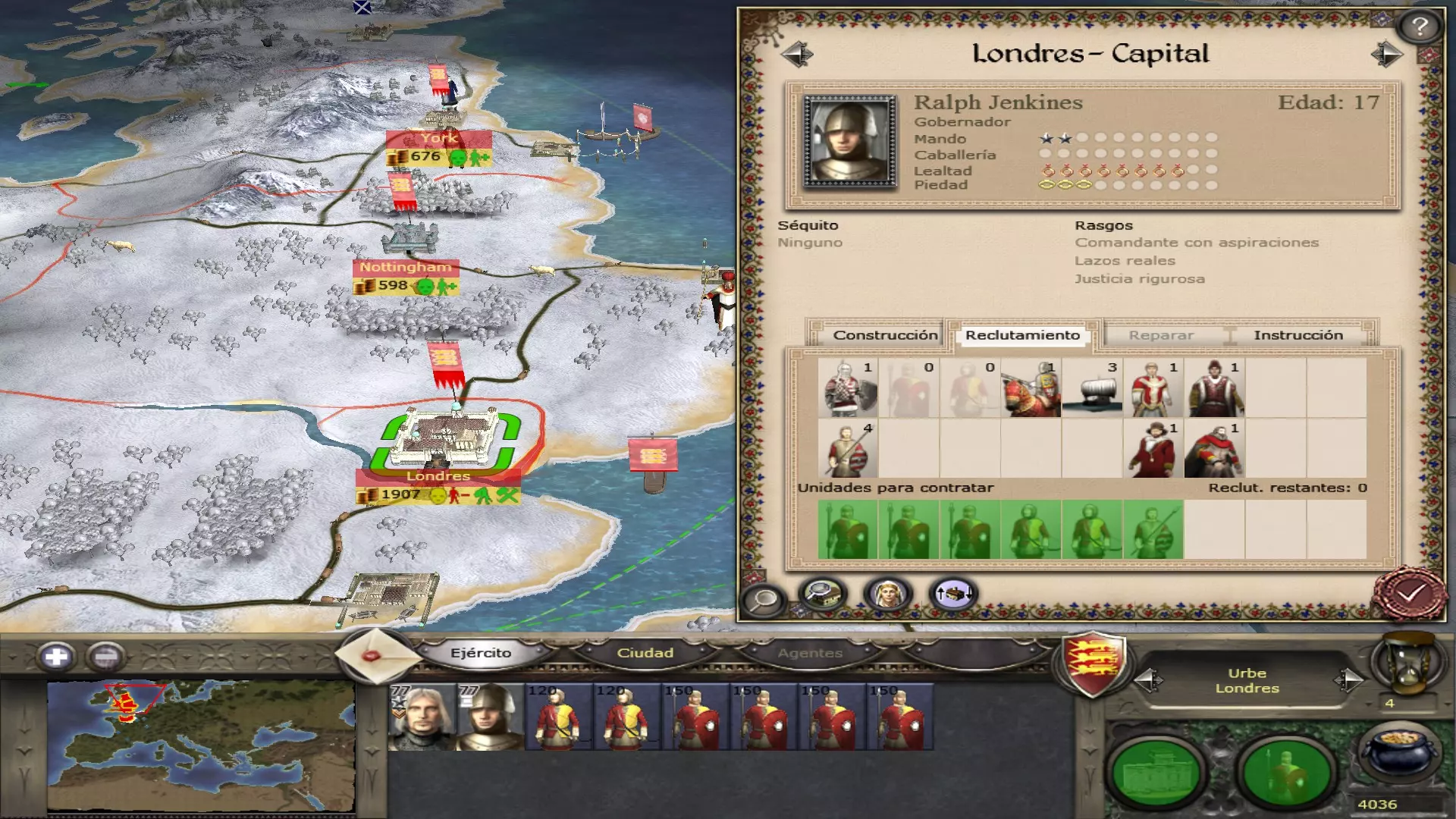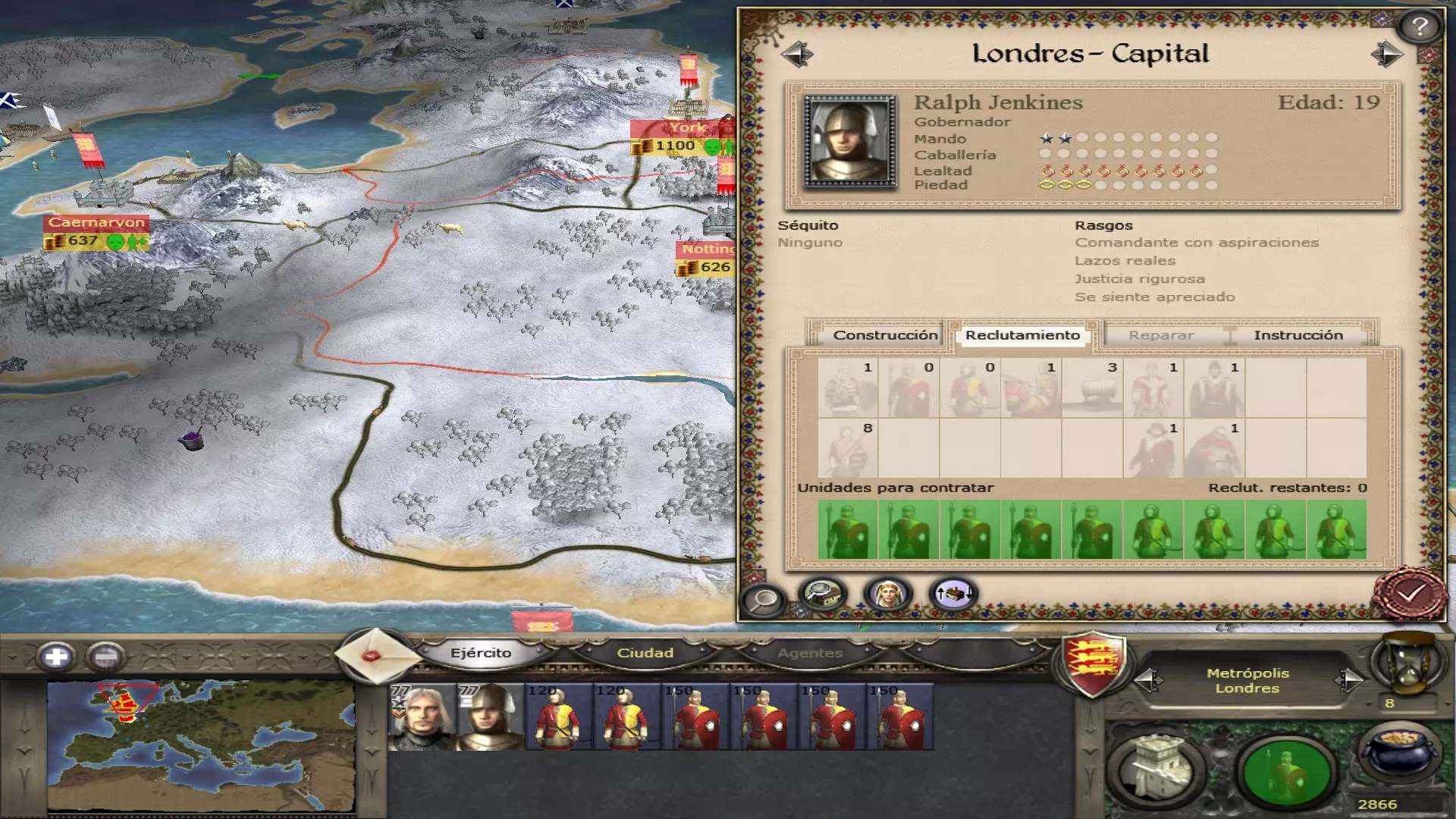 每个城镇均可招募将领,共有3种可招募的将领类型(步行将领、封建骑士和哥特式铠甲骑士)。苏格兰和丹麦的国王、贵族及将领在特定日期前为步行状态。