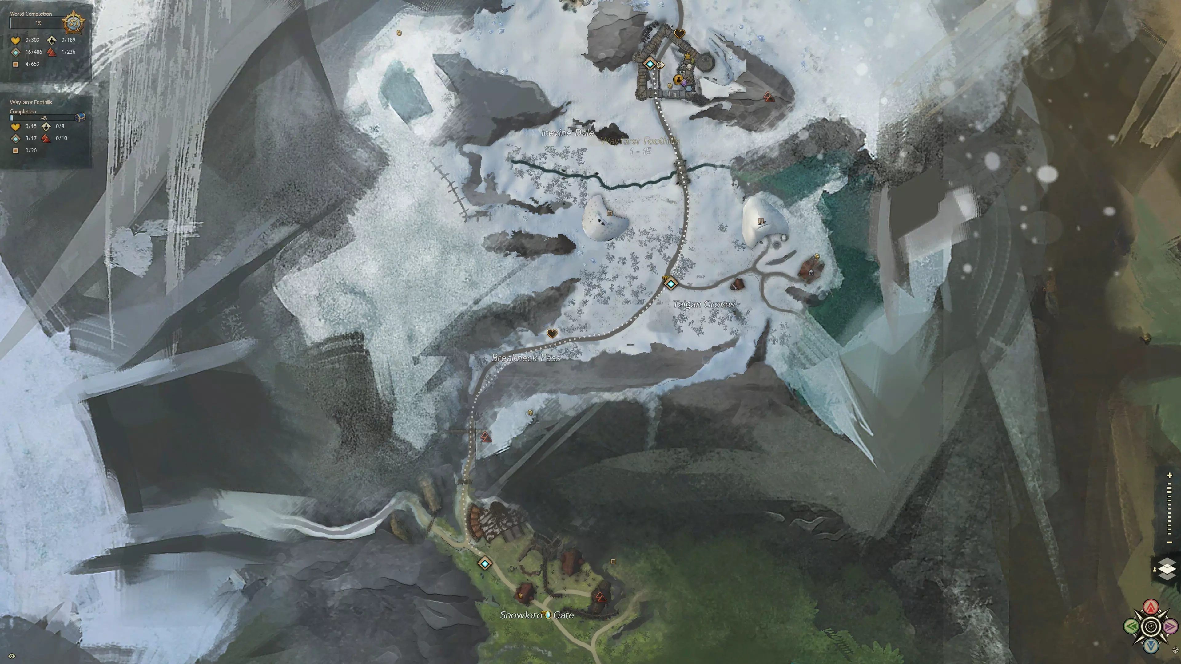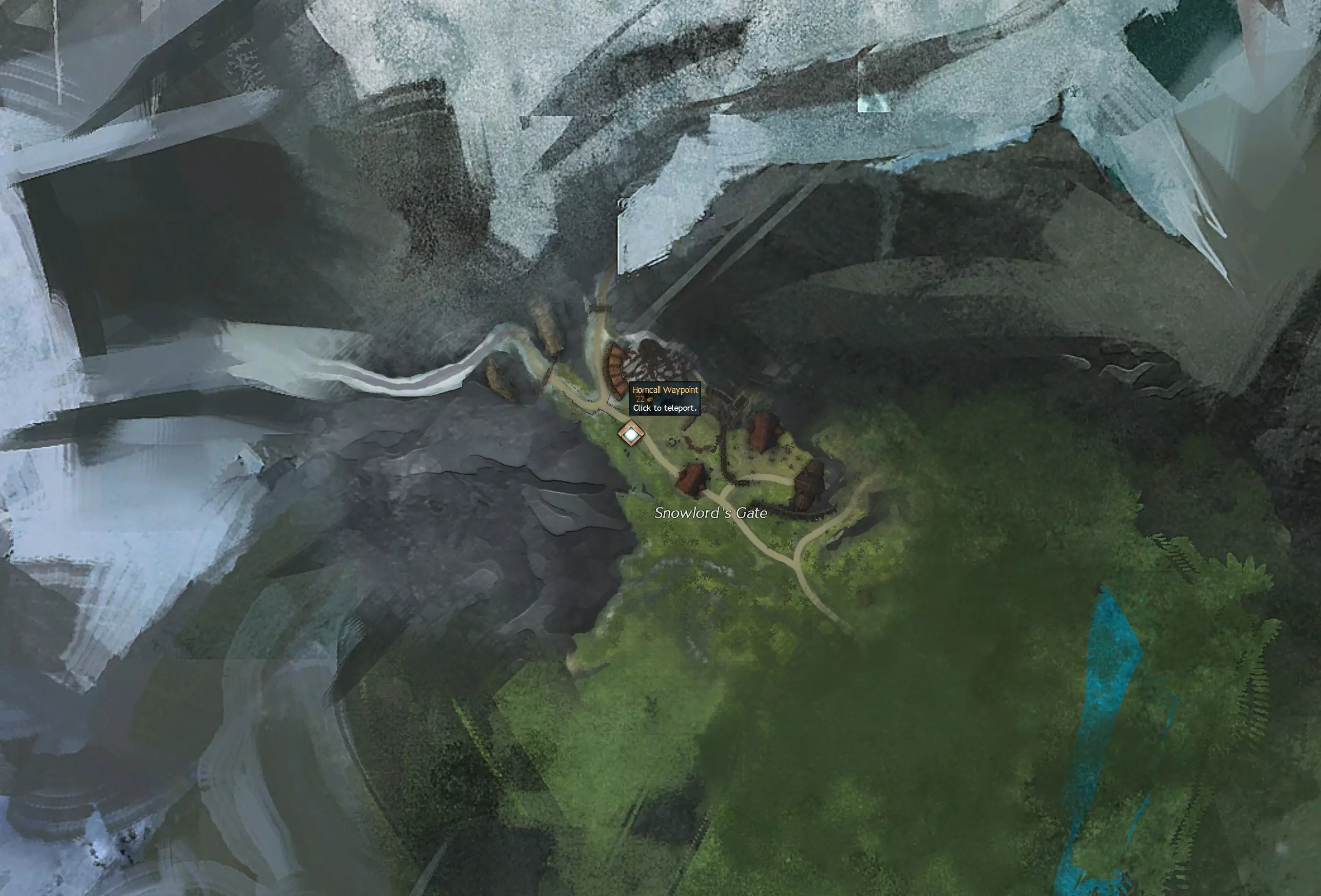 诺恩起始区域的中心位于冰原地带的雪领主之门(号角召唤传送点)以北(双脊港传送点)