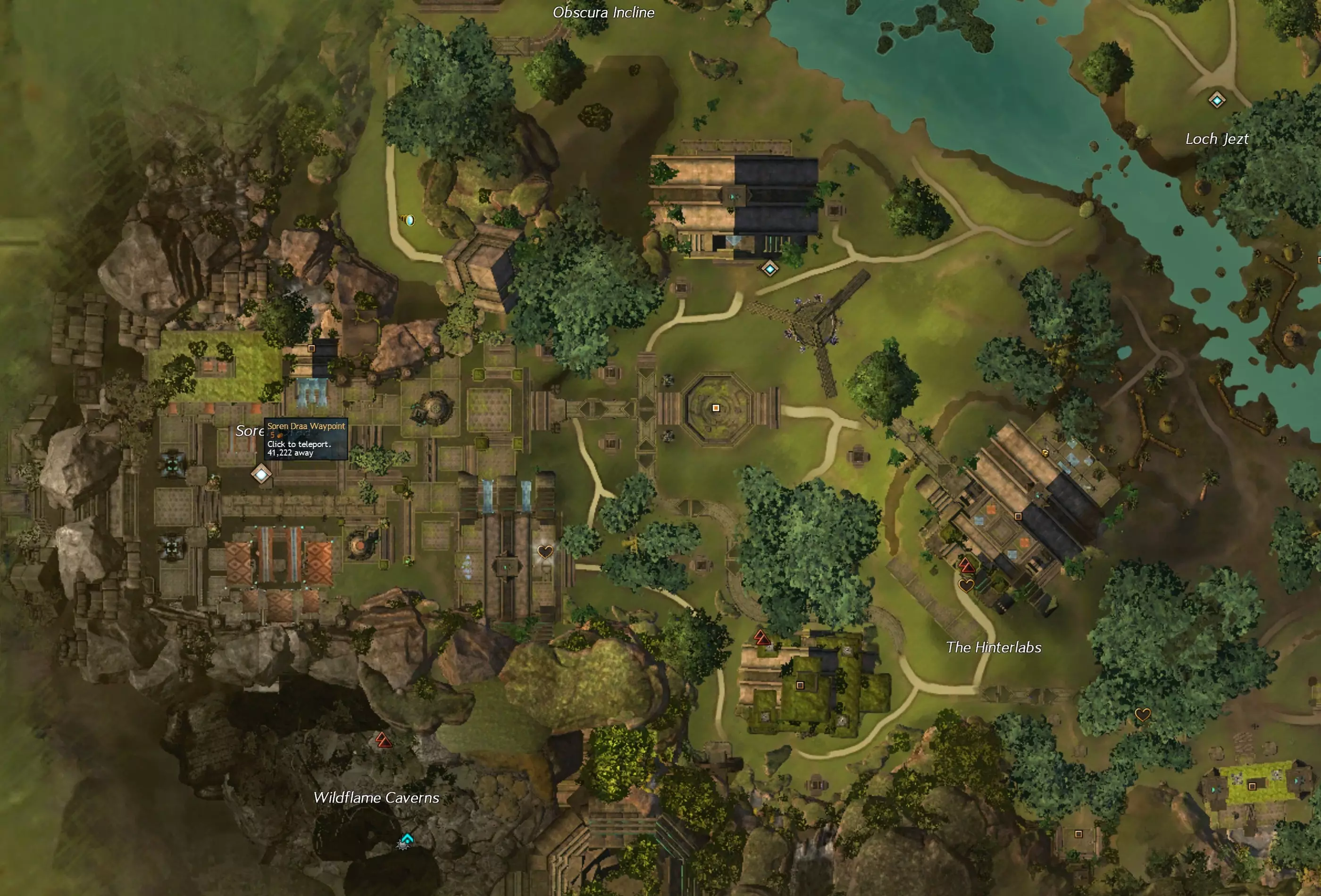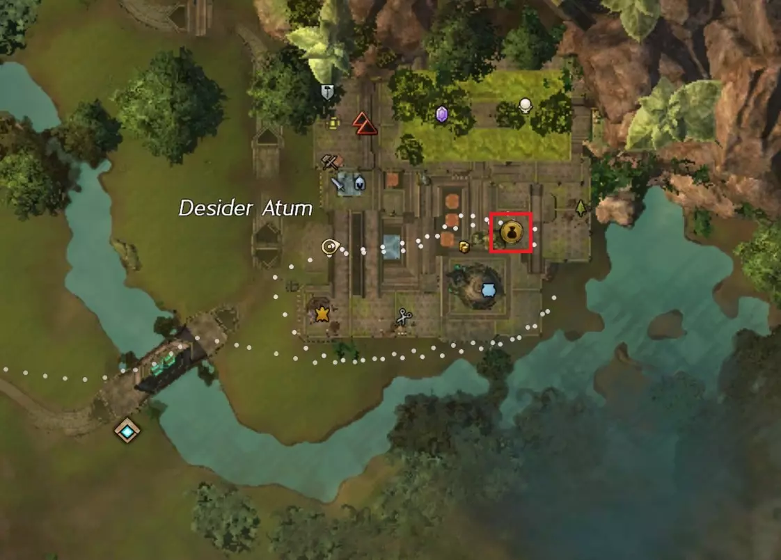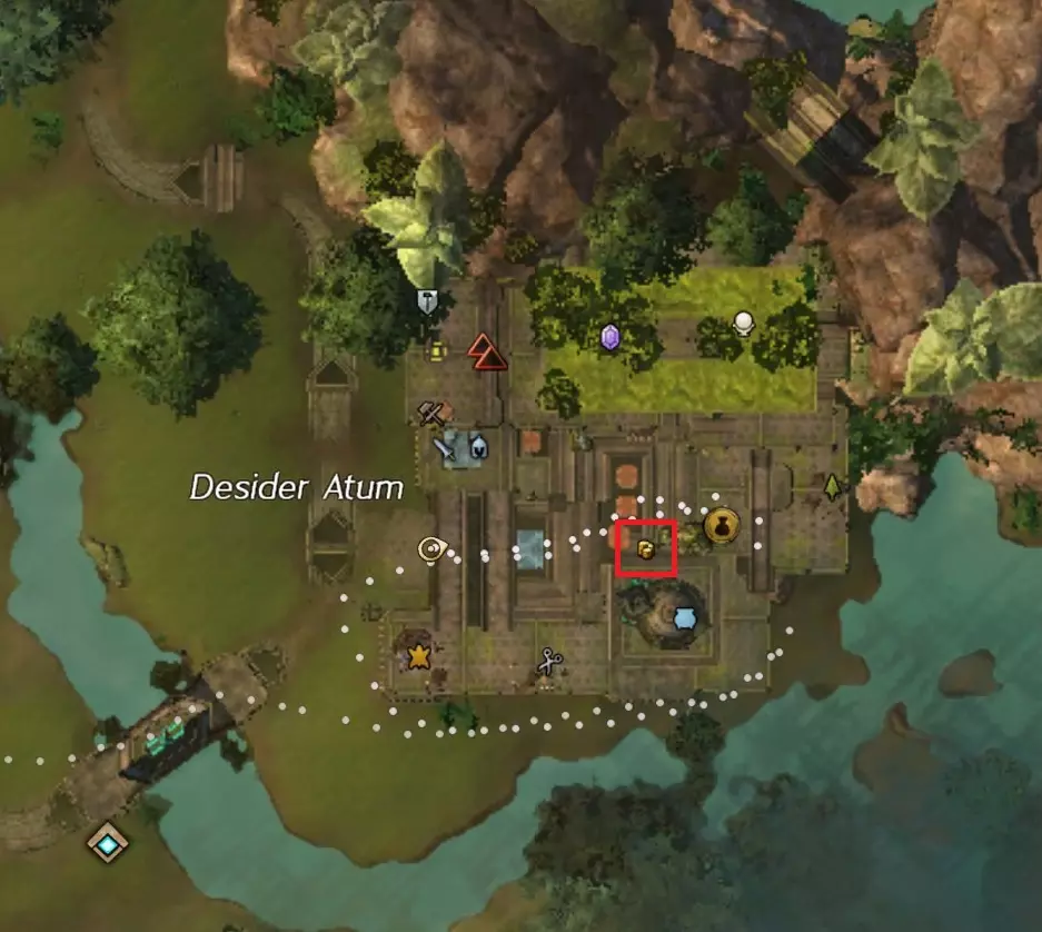 阿苏拉起始区域中心可从索伦德拉东北方向出发,沿着道路经过幽暗斜坡和杰兹特湖,到达德西德阿图姆([&BEgAAAA=])