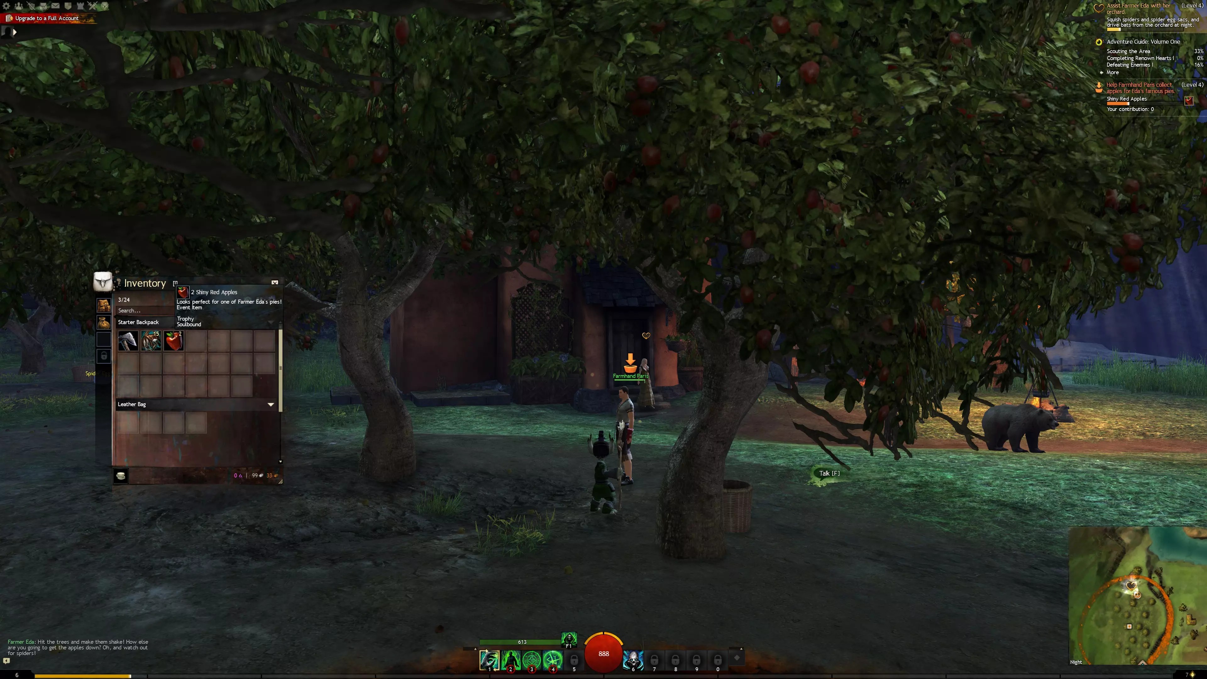 The 18 Slot Mithril Box, 18 Slot Silk Bag and 18 Slot Thick Leather Pack are all functionally identical as far as bags go, they differ solely in price point so I recommended finding the cheapest and getting that (the TP overview displays the instant buy price, for the current buy order price you will need to open each entry manually). Obviously as F2P you will still find your inventory a big tighter and more micro intensive than it is for B2P players (who have four bag slots by default), especially if you start getting deep into fractals where imo 5 bag slots will make your life much, much easier, especially at higher tiers, but as a B2P Guild Wars 2 player since launch I've never felt the need to go beyond 18 slot bags, nor felt the need to purchase extra bag slots outside of luxury - especially since the update that introduced unidentified gear, which condensed much of the random loot one used to get at level 80 by being stackable. Apart from the free 20 slot bags you can get from some sources, I gear all my PvE characters with 18 slot bags as they are much cheaper than larger bag types (20 slot bags will cost you ~10g per bag, be it from the TP or crafted). 9.0 Bonus: Easy 20 slot bags In addition to the above, there are several easy to obtain 20 slot bags in the game, including: 5 20 slot bags can be obtained for free from Living World Season 1 (B2P and F2P, starting at level 80 in the Story Journal) by completing the final chapter of each episode. Bandit Coin Purse - B2P and F2P, obtained from the Bandit Weapons Specialist[wiki.guildwars2.com] collection achievement, requiring you to unlock all the Bandit weapons skins. These can be bought cheaply off the TP, crafted or bought off a WvWvW Karma Trader (price is cheaper the lower your character's level). The collection is unlocked by buying the Bandit Combat Journal off Quartermaster Seppa in the Silverwastes for 10 silver and 150 Bandit Crests (earned in the Silverwastes). Halloween Pail & Large Wintersday Gift - B2P and F2P, can be obtained for free from Halloween and Wintersday and their respective holidays' rewards tracks in sPvP. Generally not worth buying using Candy Corn Cobs or Snow Diamonds. Simple Olmakhan Bandolier - B2P PoF + LWS4E2, obtained from completing the final chapter of Living World Season 4 Episode 2, A Bug in the System. Can be upgraded to 24, then 28, then finally 32 slots via the Lasting Bonds[wiki.guildwars2.com] achievement collections. Another 32 slot bag can be earned via the Seasons of the Dragons[wiki.guildwars2.com] achievements (B2P + at least 16 episodes from LWS2 through 5). Uncanny Jar - B2P and F2P, obtained from the Uncanny Canner[wiki.guildwars2.com] collection achievement, which requires a bit of travelling but is very cheap. 10.0 Bonus: Bag types >10.1 Standard Bags >10.2 Specialised Bags >10.3 Fractal Equipment Boxes >10.4 Equipment Pact Boxes and Marshal's Saddlebags >10.5 Pillager's Packs and Siegemaster's Satchels (WvW) >10.6 Ascended Bags (advanced, >20 slots) 10.1 Standard BagsStandard bags are of the basic (white) rarity and are generally not bound, meaning you can move them between alts using your bank or resell them on the trading post. As discussed in the previous section, some 20 slot bags can be earned from achievement collections (some F2P, some B2P), some specific living world episodes (including all of season 1 for F2P and B2P alike), and some festivals. 10.2 Specialised BagsSpecialised bags are of the fine (blue) rarity and are generally not bound, meaning you can move them between alts or resell them on the trading post. These bags ignore inventory sorting via the Compact button. These bags otherwise work like normal bags and will fill normally if the bags above them are full, but if the bags above them are not full they prioritise picking up certain types of loot depending on which type of specialised bag they are. Buy orders for these bags tend to take longer to fulfill than buy orders for standard bags. The most common varieties of specialised bags break down into the following types: