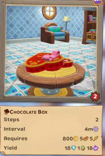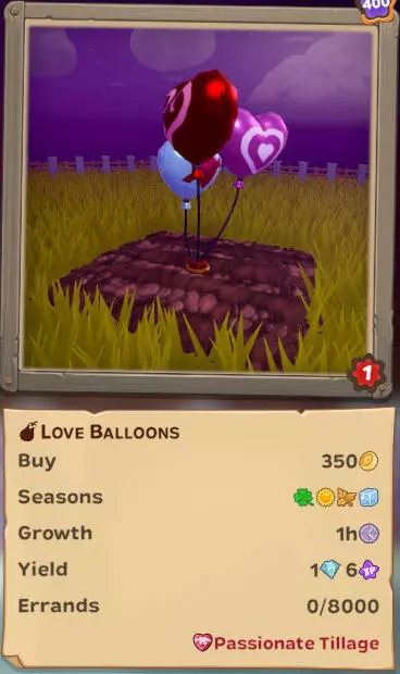 (每日)独自收集爱心气球x100 (每日)独自收集爱心气球x600 (每日)独自收集爱心气球x1200 (每日)在其他玩家的农场收集爱心气球x1600或让他人在你的农场收集 (每日)独自收集巧克力盒x1 (唯一)独自收集爱心气球x8000或让他人在你的农场收集 活动作物及食谱...