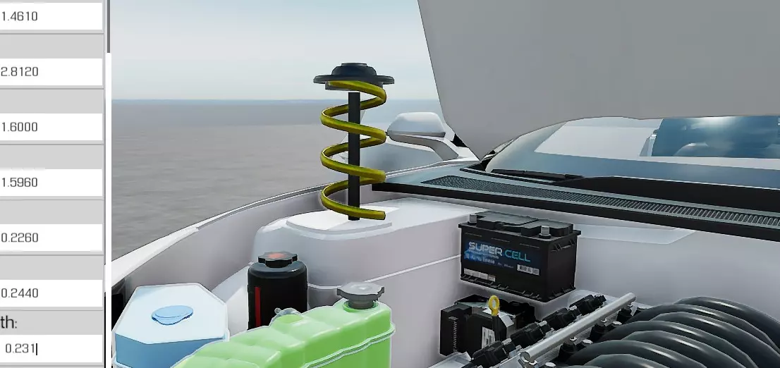 点击【爆炸车辆】以打开所有车门,这样你就能看到发动机舱并在那里安装弹簧。