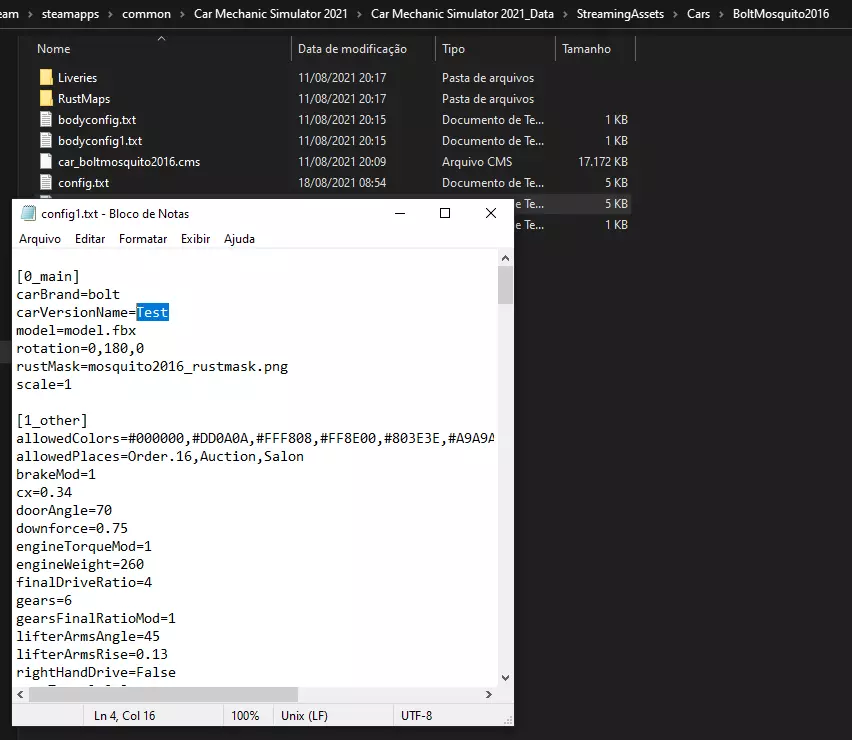创建你想要的车辆新版本 建议创建一个新的车辆版本进行编辑,这样不会让它们出现在订单中(除非你希望如此),也不会影响存档中当前正在使用的车辆,这种方式更安全。 开始操作吧,选择你想要编辑的车辆,然后复制粘贴“bodyconfig”和“config”文件。之后,在文件名末尾添加一个数字进行重命名,就像图片中那样。 在这个例子中用了1,因为只有车辆的默认版本,但有些车辆默认就有多个版本,所以你需要使用下一个数字,例如2。