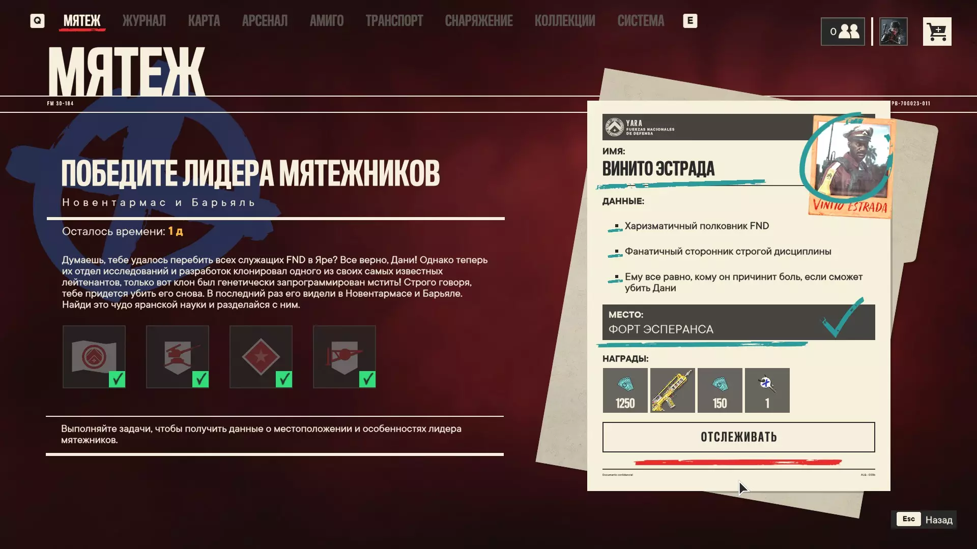 要完成每周暴动,您需要: 1. 摧毁2座高射炮。 2. 占领2个检查站(占领后可获得5名新成员用于班idos行动)。 3. 占领2个FND基地。 4. 完成特殊行动(每周不同)。 5. 完成上述内容后,将解锁最终任务,完成该任务可获得最高奖励(实际上是另一个FND基地)。我建议悄悄占领FND基地,并完成无线电里要求的额外任务,这样在占领结束时你能获得更多资源。