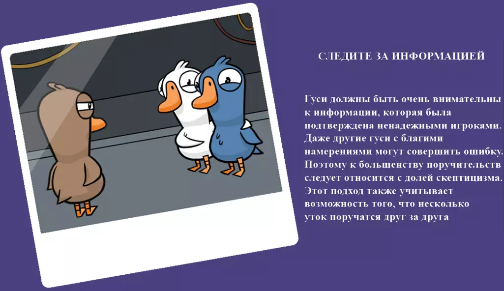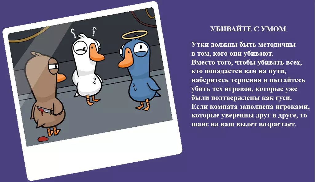 如果检查结果显示有人杀了人,这并不意味着这个人就是内鬼,可能是【正义鹅】在自卫且没有上报,也可能是【警长鹅】不想暴露自己的身份。