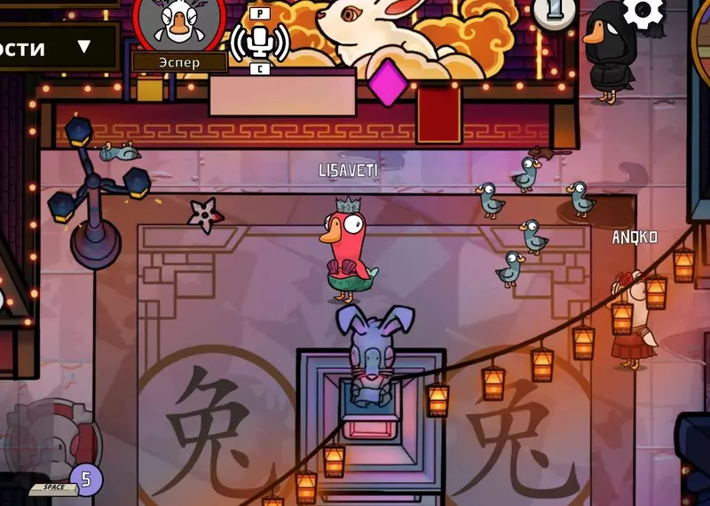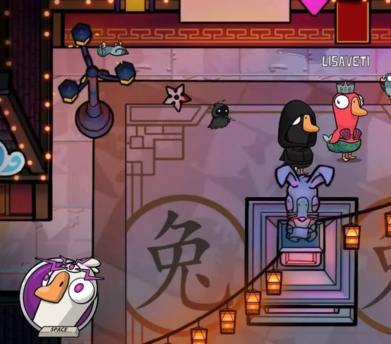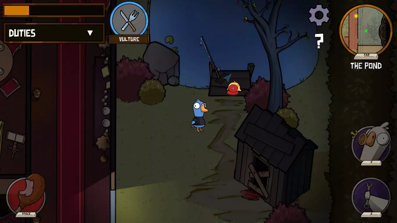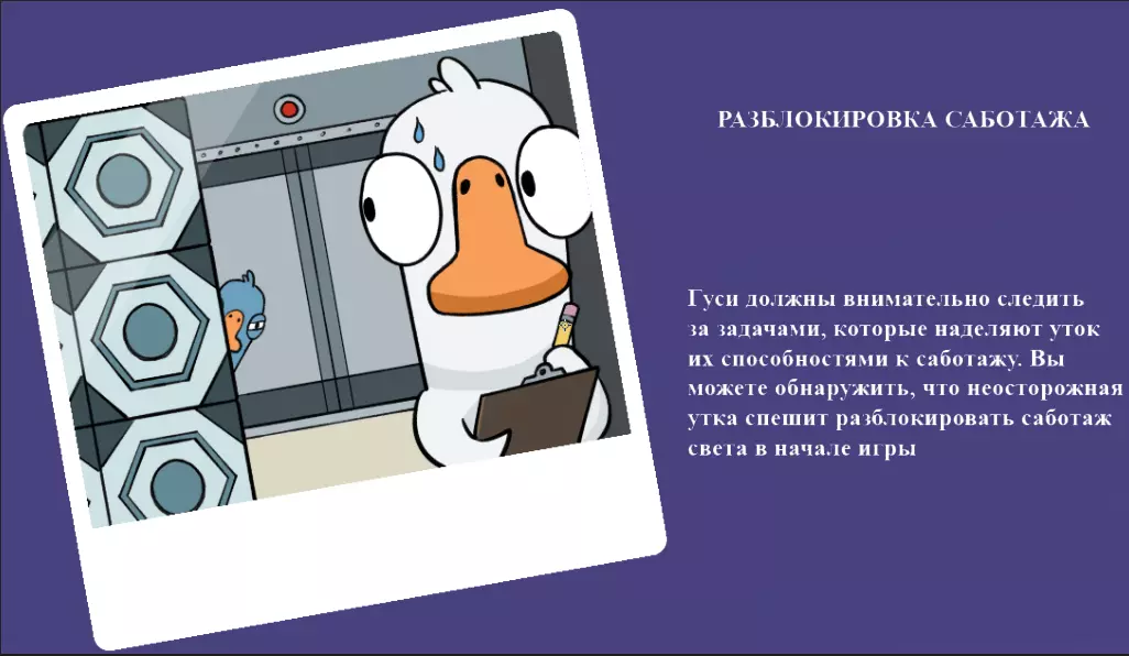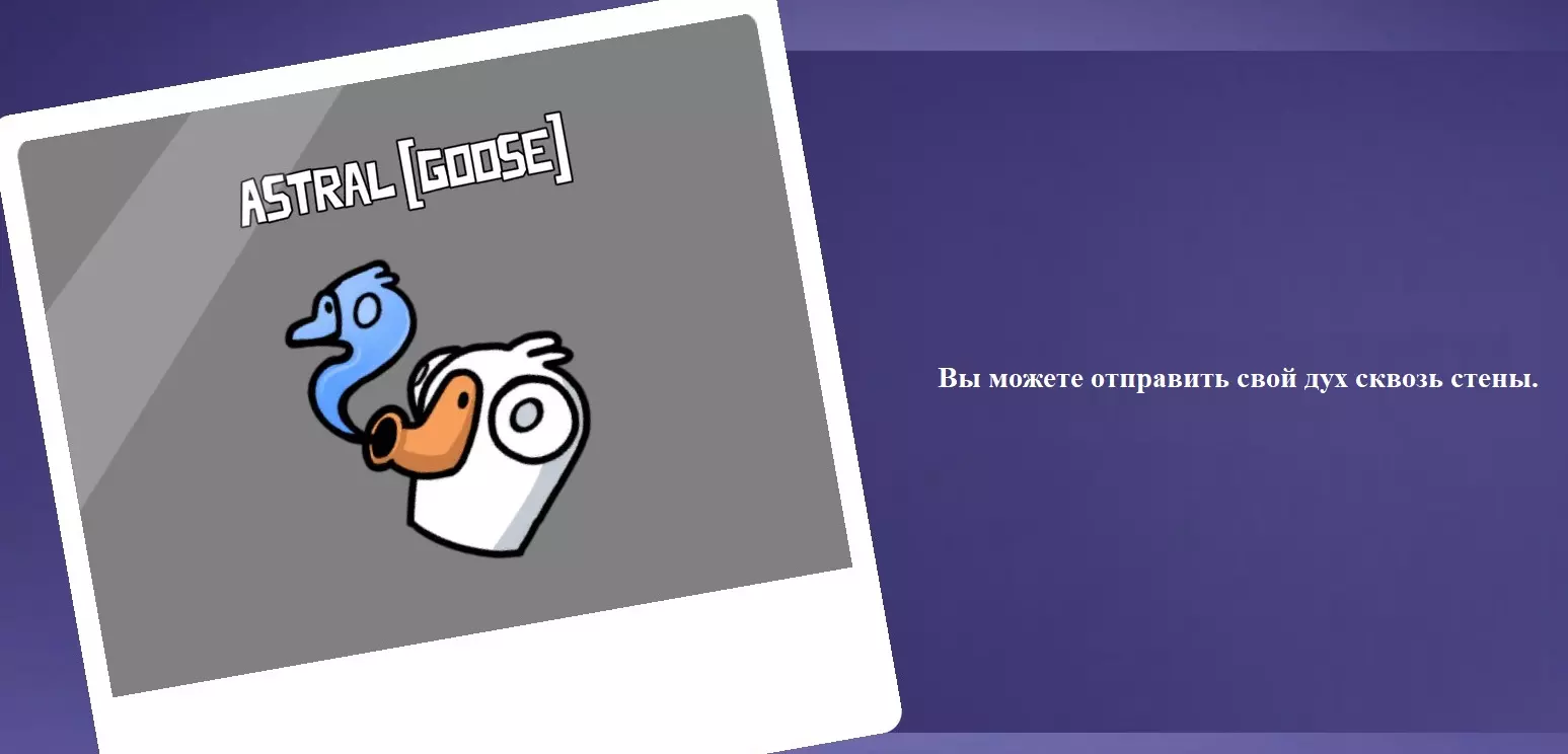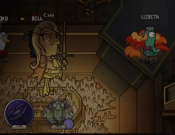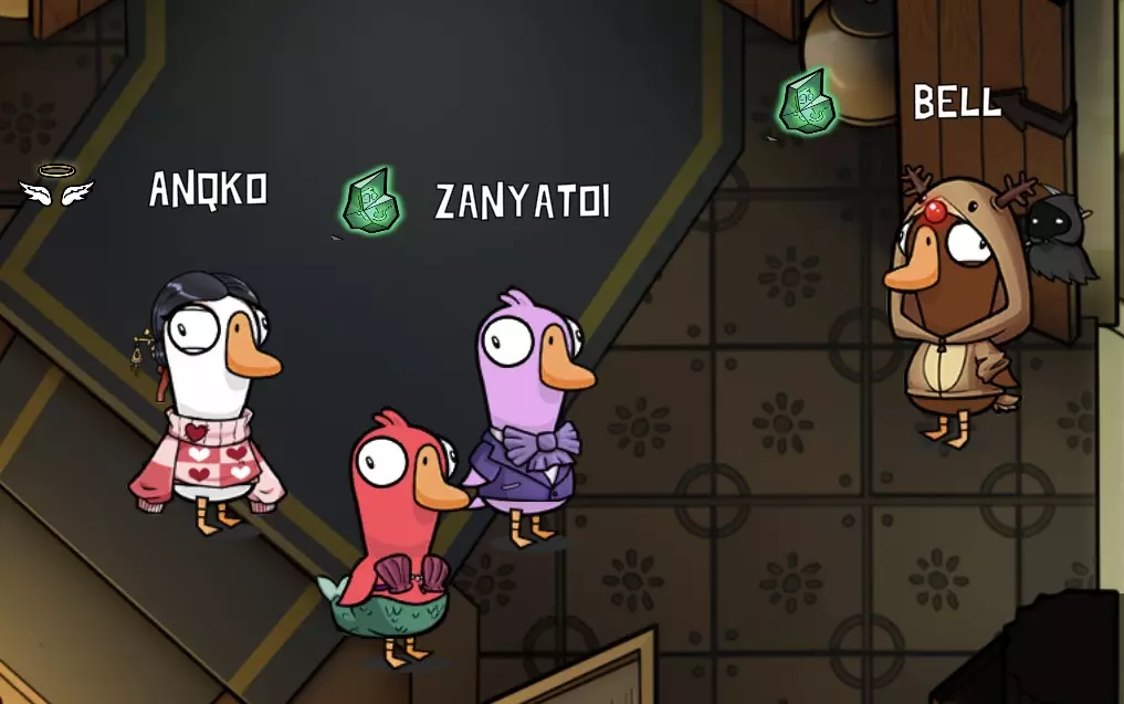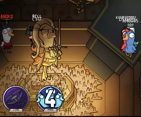 你是个叛徒,除了普通地杀鹅,还能给它们充氦气,让它们在投票时的声音变得更高(这对你毫无帮助,你就这么过吧)。要改变声音,你需要在回合中靠近“受害者”并按下技能键。在下一次投票时,“受害者”的声音就会改变。