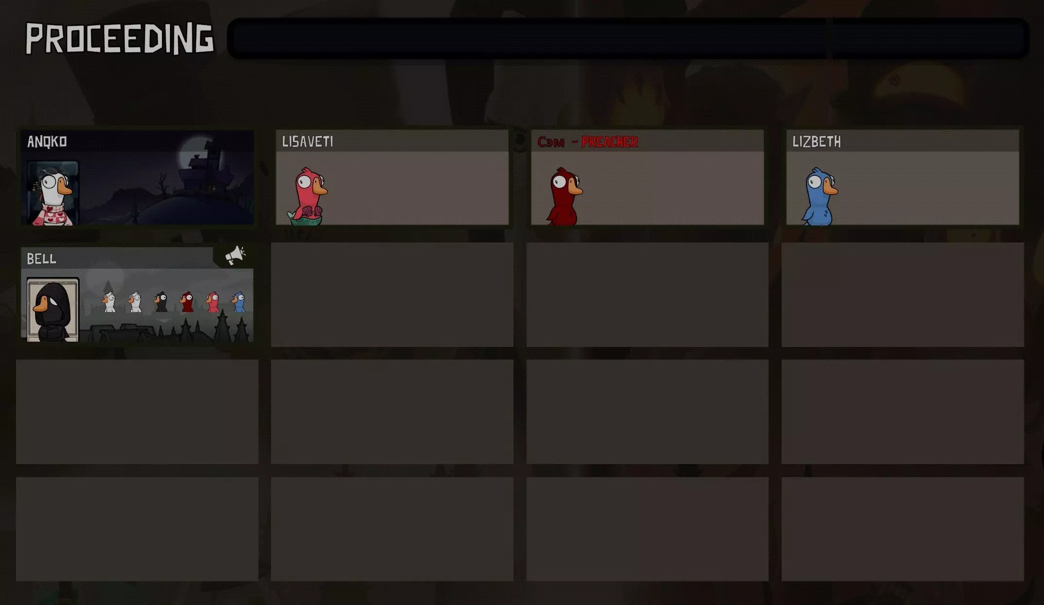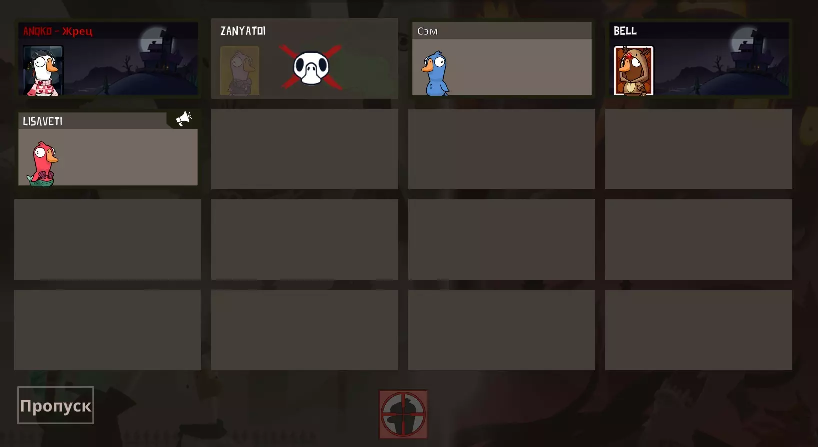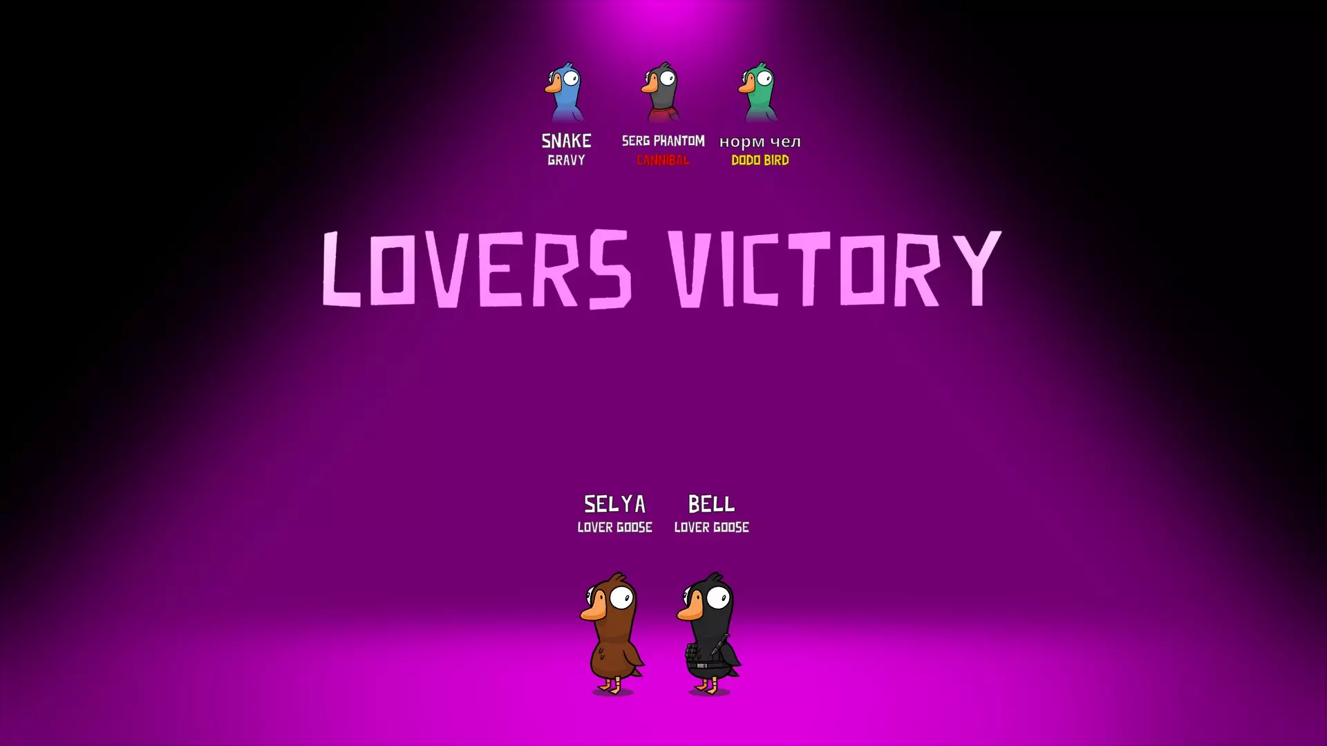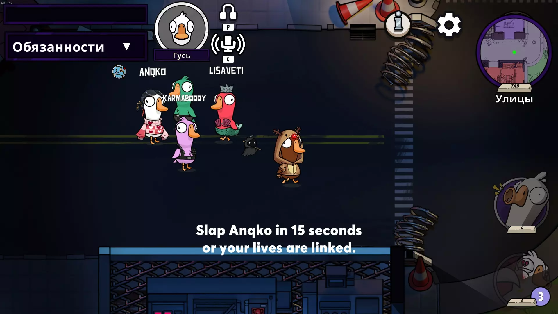 你是个叛徒,除了普通地杀鹅,还能给它们充氦气,让它们在投票时的声音变得更高(这对你毫无帮助,你就这么过吧)。要改变声音,你需要在回合中靠近“受害者”并按下技能键。在下一次投票时,“受害者”的声音就会改变。