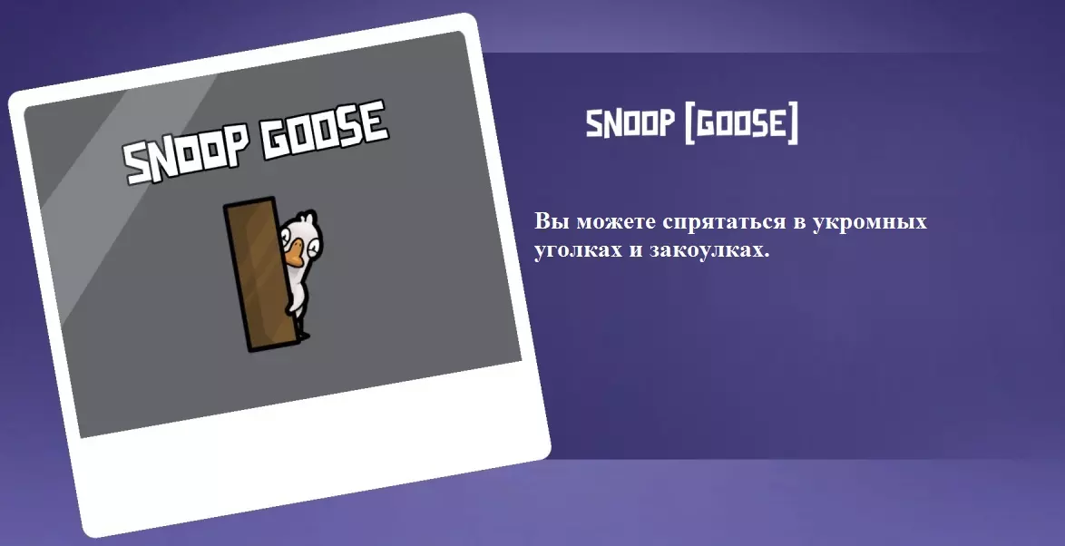 你是叛徒。你没有常规的击杀玩家方式。要进行击杀,需要收集地图上散落的腐败物。收集六份腐败物后,将解锁一项技能,使你能对周围一定范围内的玩家造成击杀,你将成为一颗行走的炸弹。积累的腐败物会逐渐减少。获得技能后可以将其激活,随后开始倒计时(8秒)。在此期间,你会像炸弹一样发出滴答声,周围所有人都会听到并试图远离你。第6秒时可以提前引爆。如果技能使用后时间结束,什么都不会发生,需要你手动引爆自己。若同时引爆三只及以上的鹅,你不会死亡。你无法通过爆炸杀死内鬼。如果你是唯一的叛徒,爆炸半径会增加。该角色仅在【腐蚀模式】中可用,且需要两名或三名叛徒。