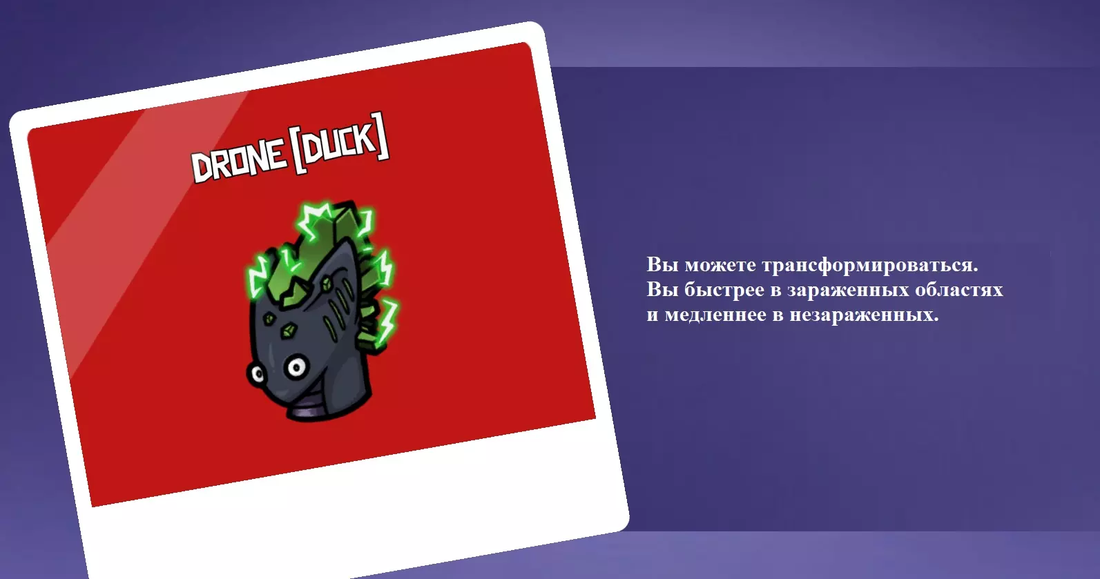 你是叛徒。你的能力允许你变身为外星机器人。你可以在变身状态下停留任意时间,且其他玩家无法看到你的昵称。但如果你不在感染区域内,移动速度会变慢。