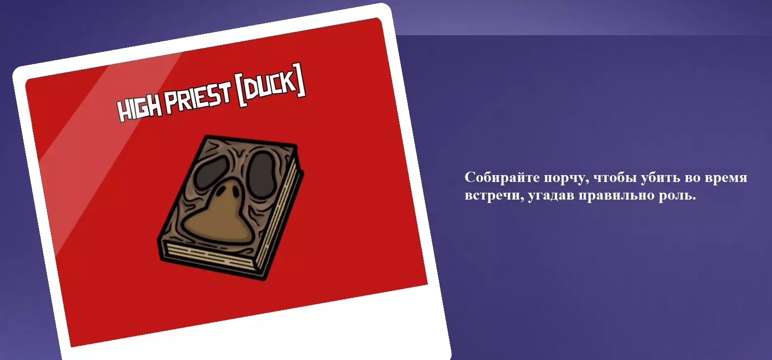 你是叛徒。你的特点是只能击杀被标记为【目标】的鹅。击杀一个目标后,会立即出现下一个目标。技能冷却时间取决于你击杀的对象:击杀目标会减少2秒冷却时间,击杀其他鹅则会增加4秒冷却时间。 传教士