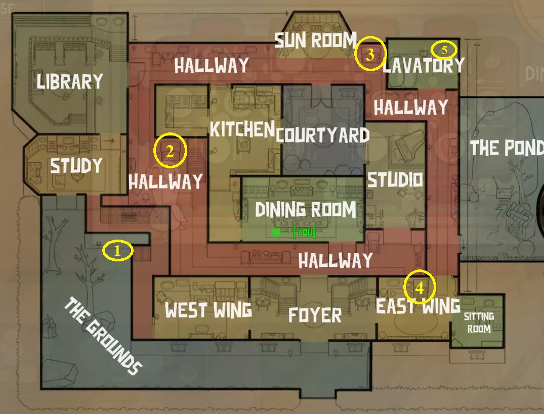 你是和平玩家,你的任务与机械师的任务相同。该角色仅适用于一张地图,即别墅。以下截图显示了斯努普(Snoop)可能藏身的位置。 1 - 配电箱旁的树叶堆