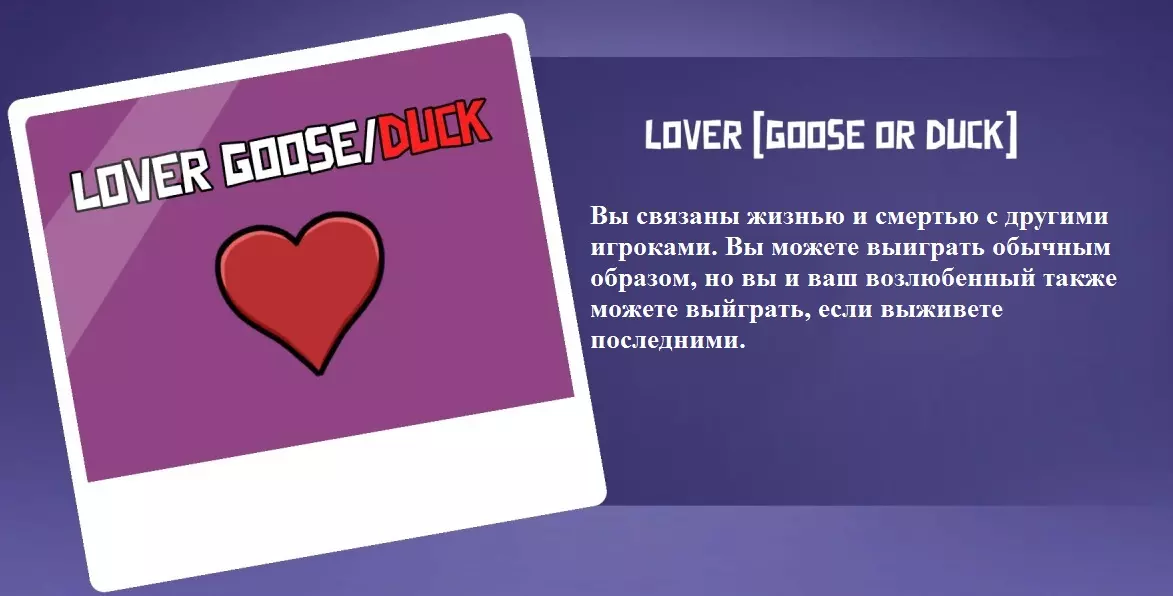 你不是叛徒,也不是和平玩家。你们是恋人,这才是最重要的!你和另一名玩家将彼此绑定。如果你们中的一人因任何原因死亡,另一人将自动一同死亡。游戏中有时会出现恋人属于同一阵营(比如都是和平阵营)的情况,此时你们要做的就是完成任务并生存下去。你必须活下去,这样对方才能活下去。有时会出现情侣分属不同阵营的情况,一方是背叛者,另一方是和平者。无论如何,你都绝不能出卖你的情侣,即使你目睹了他的行凶行为。在这款游戏中,无论你是否愿意,你的情侣都是最珍贵的人。如果情侣成为最后的幸存者,他们就会获胜。