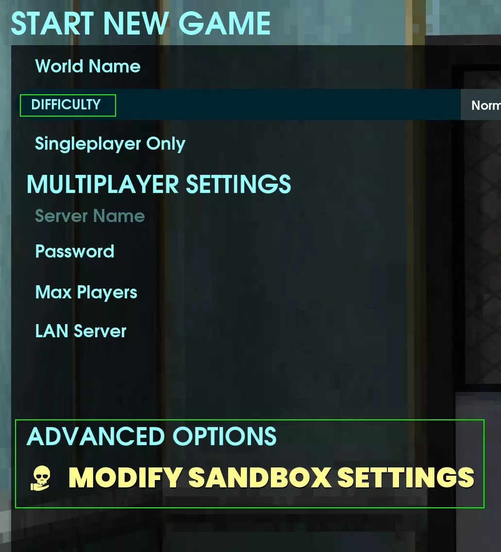 如果你打算开始新存档,并计划按照本指南操作,请执行以下步骤。如果不打算这样做,我之后会分享我的设置文件,届时请务必参考现有存档的设置编辑指南。 只需开始新存档,将默认难度设为普通,然后点击修改沙盒设置。系统会提示这仅适用于高级玩家,既然是我操作,直接点击继续即可。 调整项 - 必选项 首先,我认为要达成目标(减少重复操作,增加SCP设施探索),以下调整是必须的: