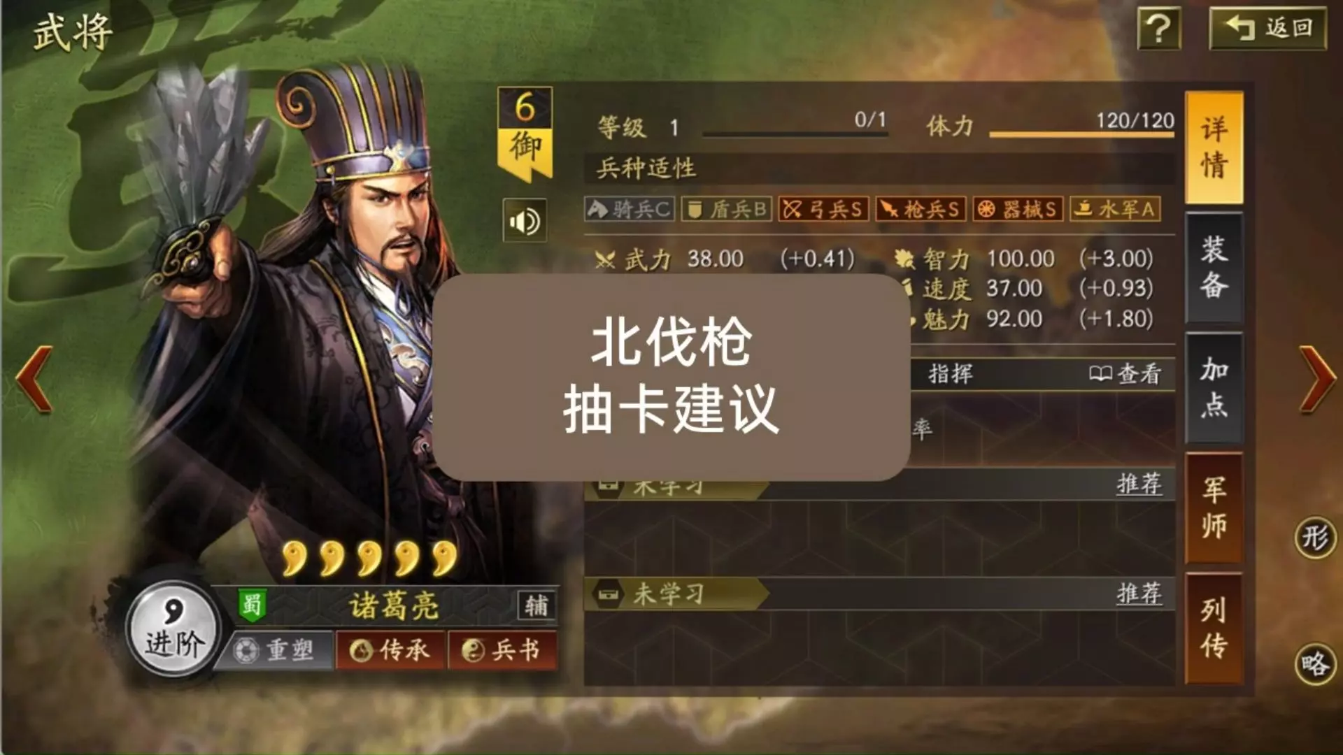 我把北伐枪SP诸葛亮的技能发动预期进行了推算,并且根据自己的战场体验,同时仔细的看了一下SP诸葛亮技能发动的机理。我对北伐枪的强度的判词就是,离最核心的桌子差一…