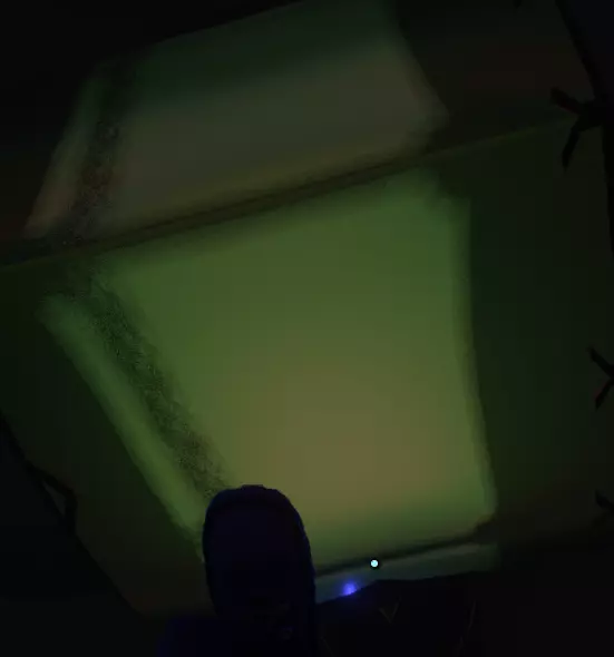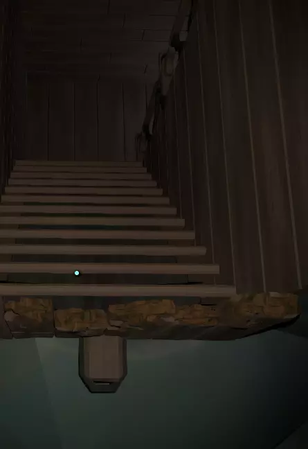 进入门口,你的右侧有一段楼梯,上楼后会发现一个类似小型电影院的地方。 左侧有一块屏幕,还有某种装置。当你打开手电筒走近时,光线会反射到屏幕上。 继续往前走,右侧会出现更多楼梯。上楼后,有一个看起来像是酒架的东西。 但酒架里有个物品,当你靠近时会显示“拿起胶片”。