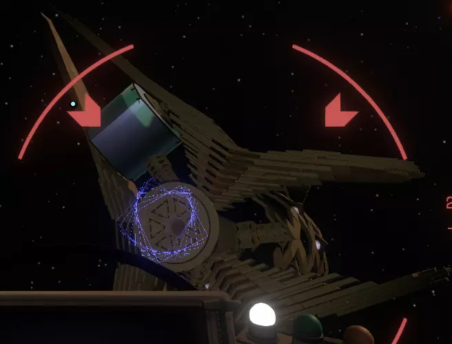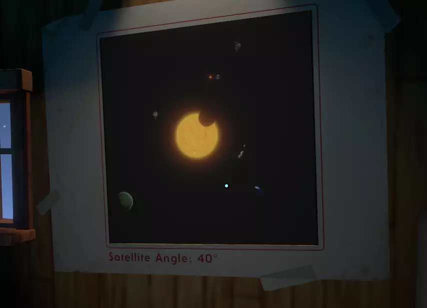 到达卫星处后,你会看到一个更小的物体在它附近漂浮,那是一个 hearthian 记录装置。 跳出你的飞船,因为你无法在飞船内与该装置互动(顺便说一下,有趣的是,当你走出飞船后,会收到一条关于附近有“未知”信号的消息。将信号镜对准卫星,即可记录“深空卫星!”) 收听录音。 录音中提到 gabbro 检查过它,检查了镜头,发现一切正常,那么接下来该做什么? 那张照片上不是说卫星在拍摄照片时处于某个特定位置吗? 在特定的角度? 走出飞船,找到并查看卫星侧面的显示屏,你会发现它随着移动,角度在不断变化。那张图片的角度是多少? 40度?听起来很熟悉? 我们该如何运用这个知识? 最简单的方法是在新循环开始时。 你就知道我会这么说,对吧? 从基地起飞,进入太空后追踪卫星的椭圆轨道,这很简单,它是唯一一条与其他天体运行方向完全不同的轨道。 接下来的步骤极其困难,令人沮丧。 你必须尽早在循环中到达卫星!但不仅仅是到达,你需要尽快尽可能靠近它,这里的机会窗口非常小。你需要到达那里,走出飞船(因为在飞船内无法看清那个小控制台),观察它直到温度达到40度,或者调整自己的位置,以便能够同时跟踪卫星并留意太阳!你要寻找一个突然出现的黑点,它会短暂地(窗口期非常短)出现在太阳前方。更难的是,一旦它经过太阳,就会完全隐形,与周围太空的“太空感”融为一体。我最终成功做到了:从基地起飞,在卫星提供的“实时”地图上找到它,锁定它,然后一边保持太阳在主视野内,一边向后或侧向朝着它飞去。