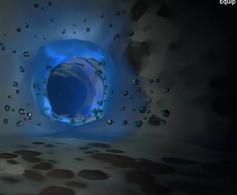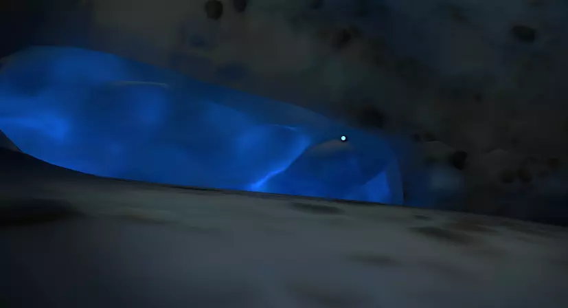 小心着陆,靠近这些地方。 现在,我们又要开始耐心等待了。很难说彗星需要多久才能到达我们下一步所需的正确位置,所以我才建议你在新循环开始时就这么做。 一直观察太阳,直到它开始靠近,然后迅速观察岩石之间的冰缝。当太阳近到让人不安时,冰就会融化并裂开。 迅速跳进下方的洞穴。 从这里开始,只有一条路可走:沿着冰隧道向下。 你会在右手边看到一条隧道,还有关于幽灵物质的警告。如果你向它附近或里面发射探测器,会看到一道绿色的闪光。