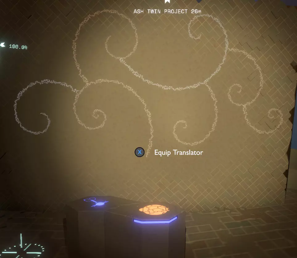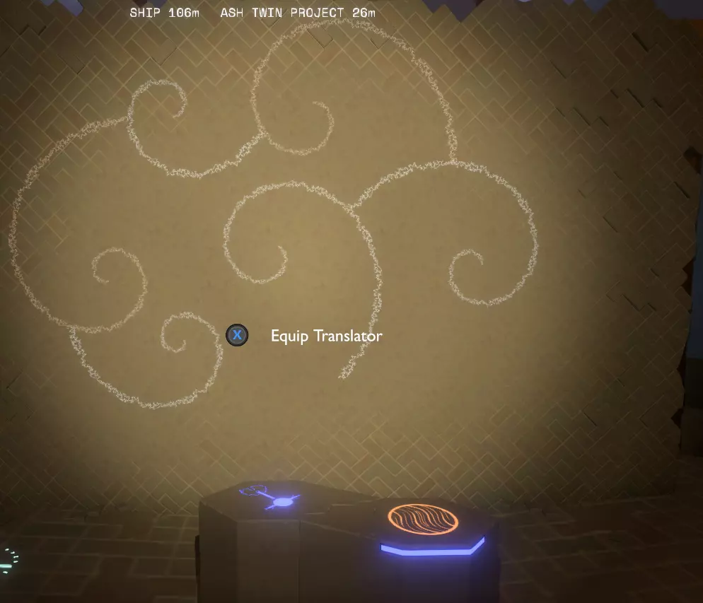 你将获得阿什双星计划的完全沉浸式视角。完成后,取下投影石并将其放置在墙前的基座上,以显示更多未翻译的文本。